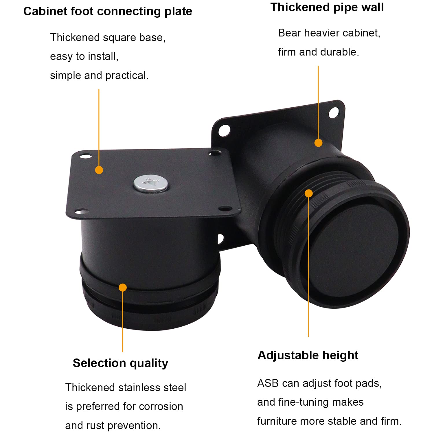 - Original Furniture Legs – 4-Pack 2 Inch Stainless Steel Furniture Legs Cabinet Adjustable Round Kitchen Feet for DIY Furniture+16pcs Stainless Steel Screw (Black 50x50mm) by weideer
