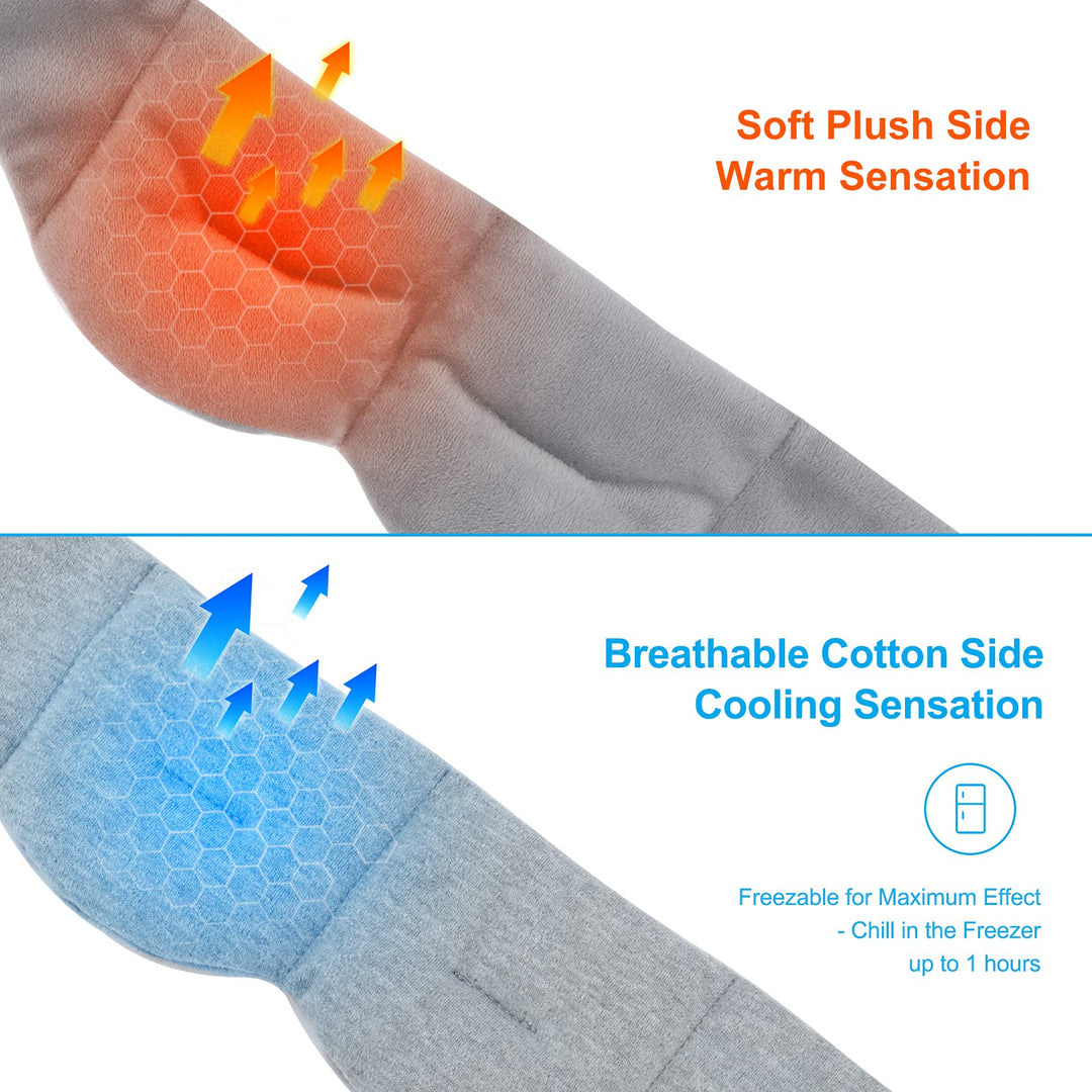 - Cool Therapy. The cotton side for cold therapy. Freeze for up to 1-2 hours in the freezer to enjoy colder therapy and provide enhanced soothing cool relief for migraine, sinus pain, puffy eyes, and eyestrain by Koamask cooling eye mask for sleeping.