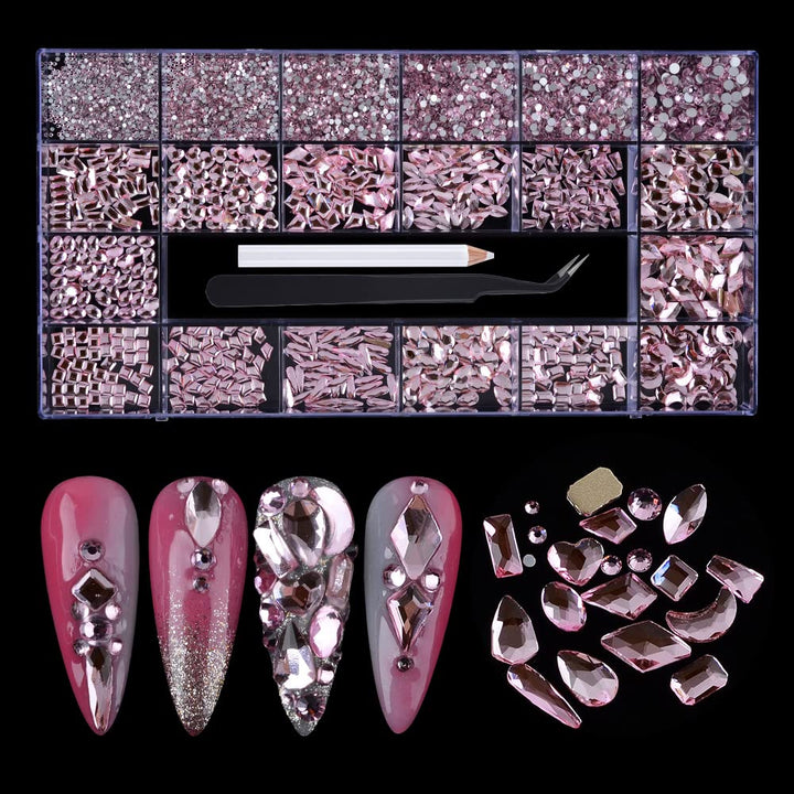 - Original Rhinestones – Nail Art Rhinestones Round Beads Flatback Crystals Gems 8620Pcs Multi Shapes Glass Crystal Rhinestones for Nail Art Makeup Face Decor Crafts Supply (Pink) by WEILUSI
