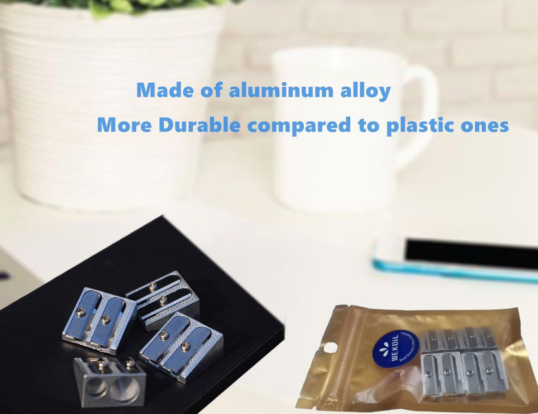 - Original Pencil Sharpeners – Wekoil Pencil Sharpeners Manual Twin Metal Dual Sharpening Blade Double Holes Rectangular Pencil Sharpener for Colored Graphite Pencils Crayons Jumbo, Pack of 4,Silver by WEKOIL