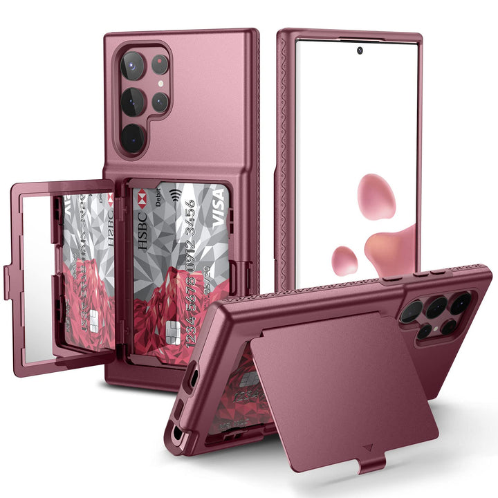 - [for Samsung S22 Ultra Credit Card Holder Case] Hidden wallet compartment securely stores up to 2 cards yet adds minimum bulk to your phone, hidden mirror inside designed specially for your daily make up.