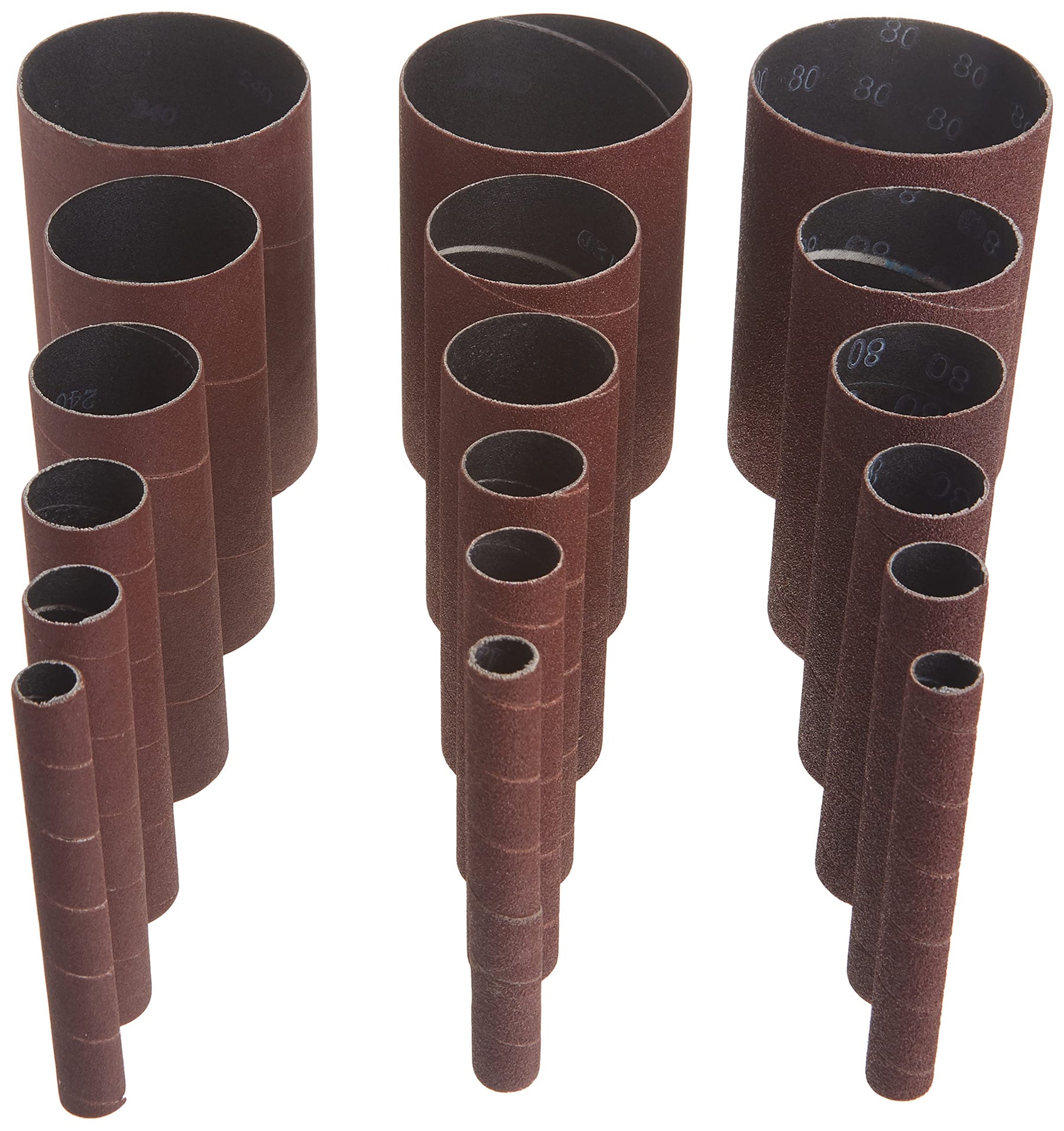 - Includes six 80-grit sleeves, six 120-grit sleeves and six 240-grit sleeves