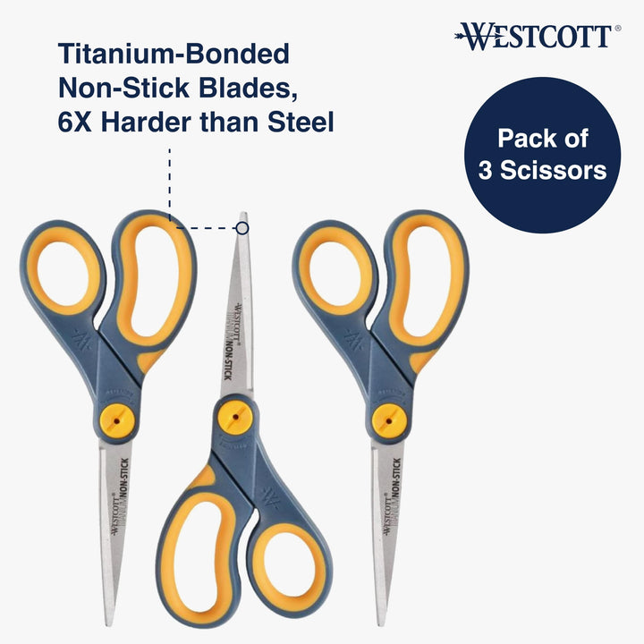- Original Scissors – 8 Titanium-Bonded Non-Stick Scissors For Office & Home, Gray/Yellow, 3 Pack (15454) by Westcott