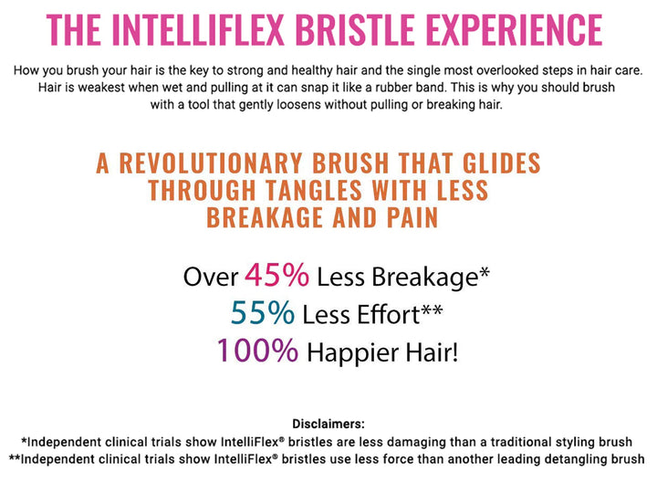 - EXCLUSIVE ULTRA-SOFT BRISTLES: The original detangler hair brush features exclusive ultra-soft IntelliFlex bristles glide through tangles and knots with ease. CAUTION: Do not use this brush with a blow dryer, as heat may damage the IntelliFlex bristles.