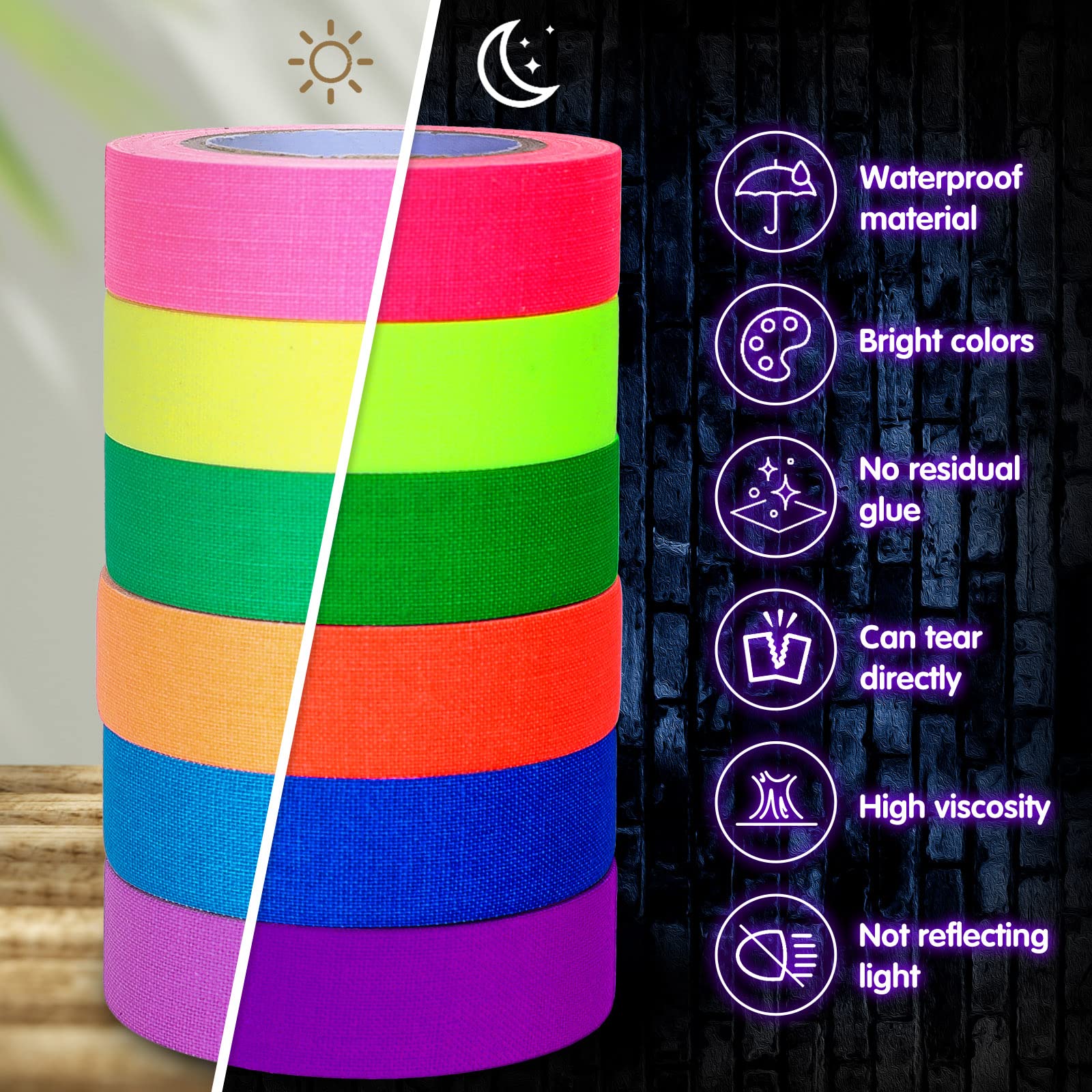 - Original Gaffer Tape – 6 Colors Neon Gaffer Cloth Tape, Fluorescent UV Blacklight Glow in The Dark Tape for UV Party (0.6 inch x 16.5 feet) by Whaline