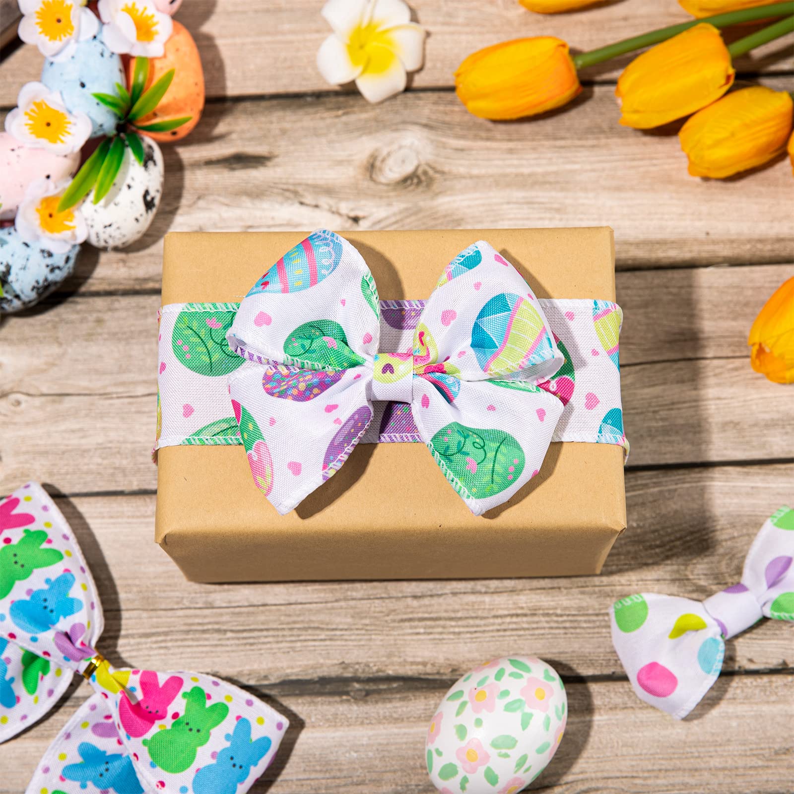 - Original – Easter Wired Edge Ribbon 4 Roll 24 Yards Easter Egg Bunny Rabbit Colorful Dot Line Spring Craft Ribbon for Crafts Bow Wreaths Gift Wrapping Party Holiday DIY Decor Supplies by Whaline