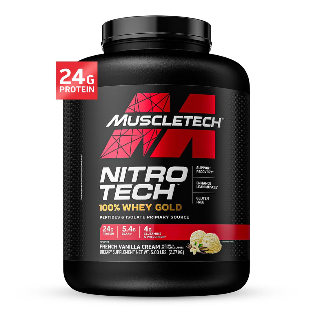 - WHEY PROTEIN POWDER – MuscleTech Nitro-Tech Whey Gold features whey protein isolate and peptides, this ultra-pure, rapidly absorbed and quickly digested protein is engineered to support fast recovery, helping you build more lean muscle