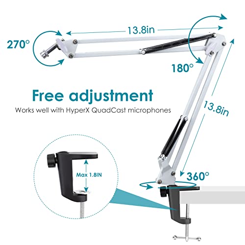 - Easy to Adjustment and Position - The White boom arm for QuadCast S microphone rotates 360 degrees and a two axis swivel mount for giving you a perfect range of motion. Dual suspension springs of each boom arm protect microphone from shaking, suddenly dropping. It's sturdy steel construction, easy to setup and Folding.