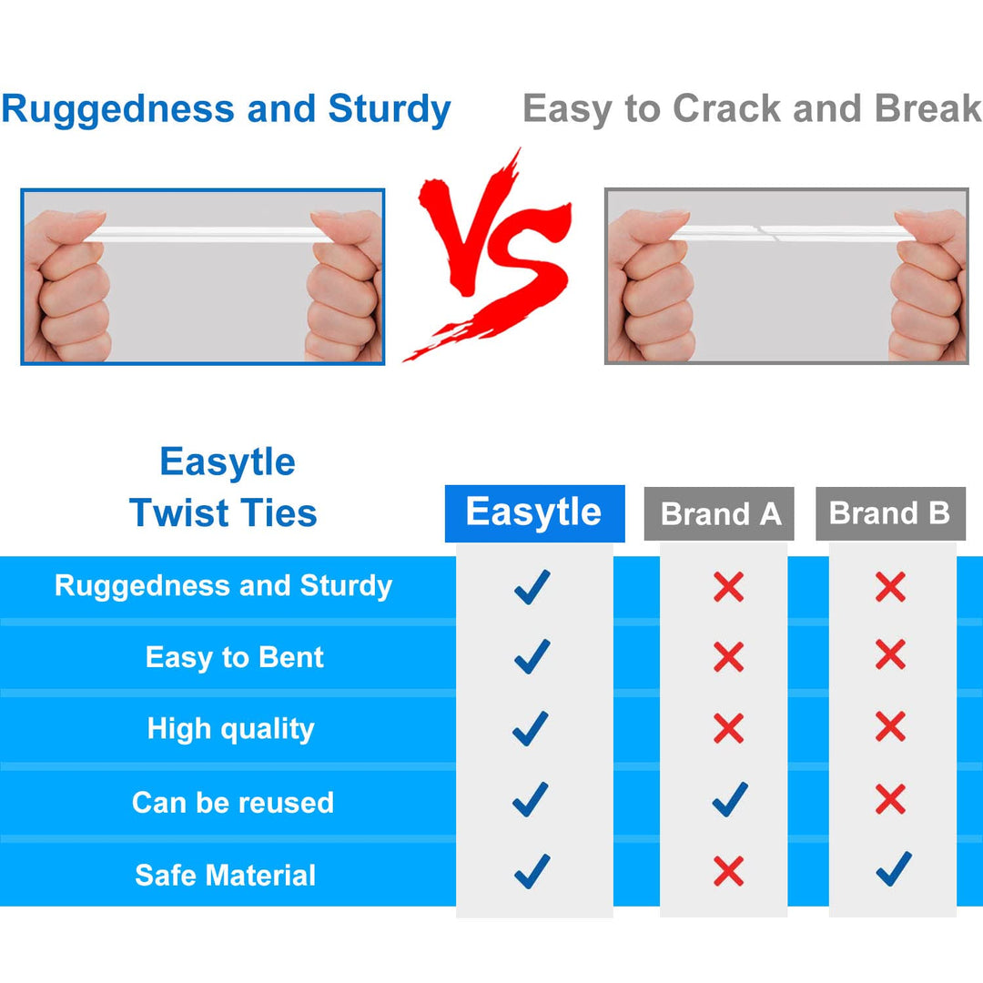 RUGGED AND REUSABLE: Reusable twist tie made of strong metal wire core and premium paper coating, so bread ties will not break or snap. You can use bread ties twisty-ties quickly and easily close bags and tie up cords. Twist ties for bags will last for years and can be reused many times.