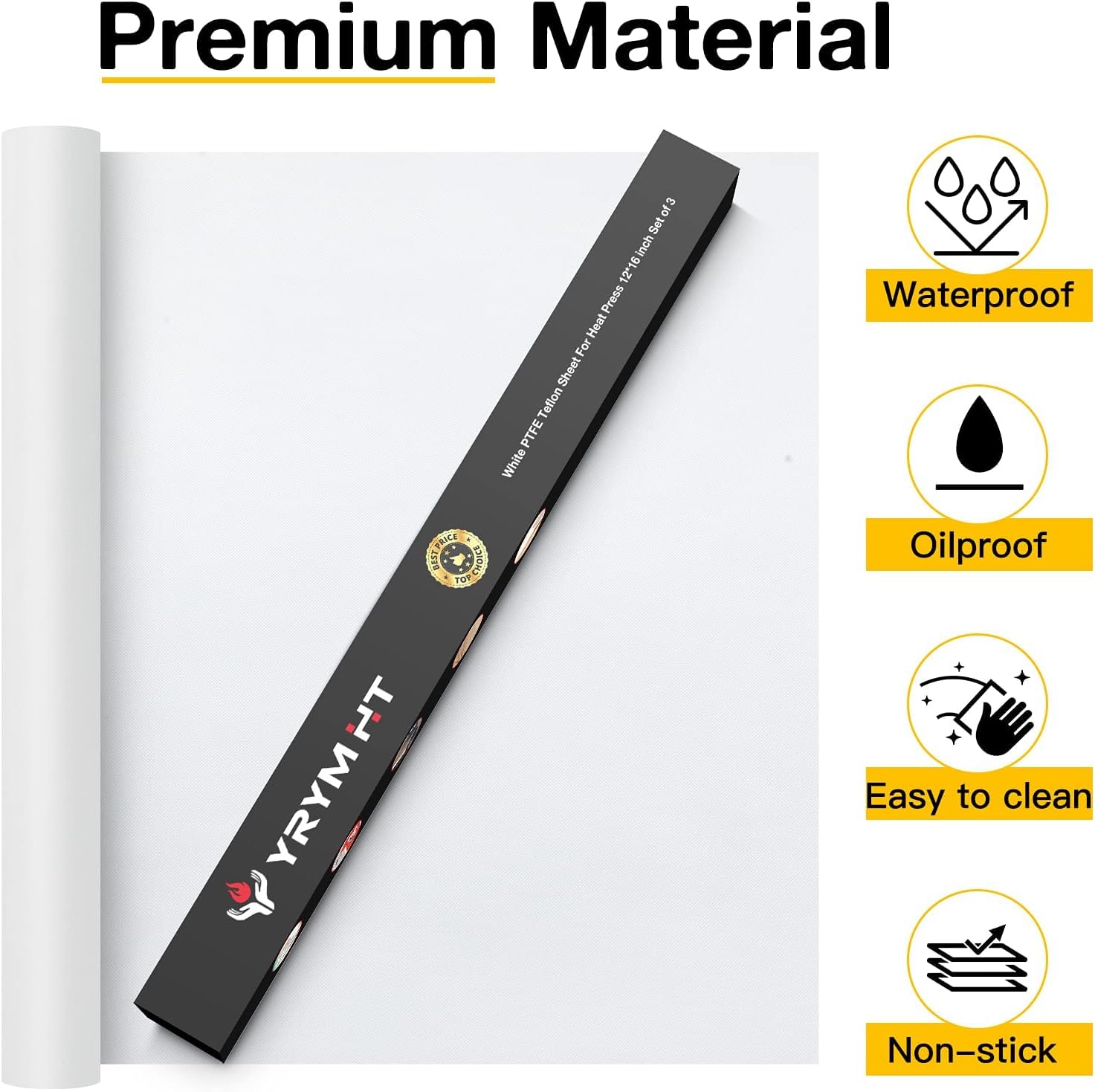 - Original Parts & Accessories – White Teflon Sheet for Heat Press - 3 Pack Non Stick Teflon Sheets 12 x 16 Heat Transfer Paper Reusable Heat Resistant Craft Mat by YRYM HT