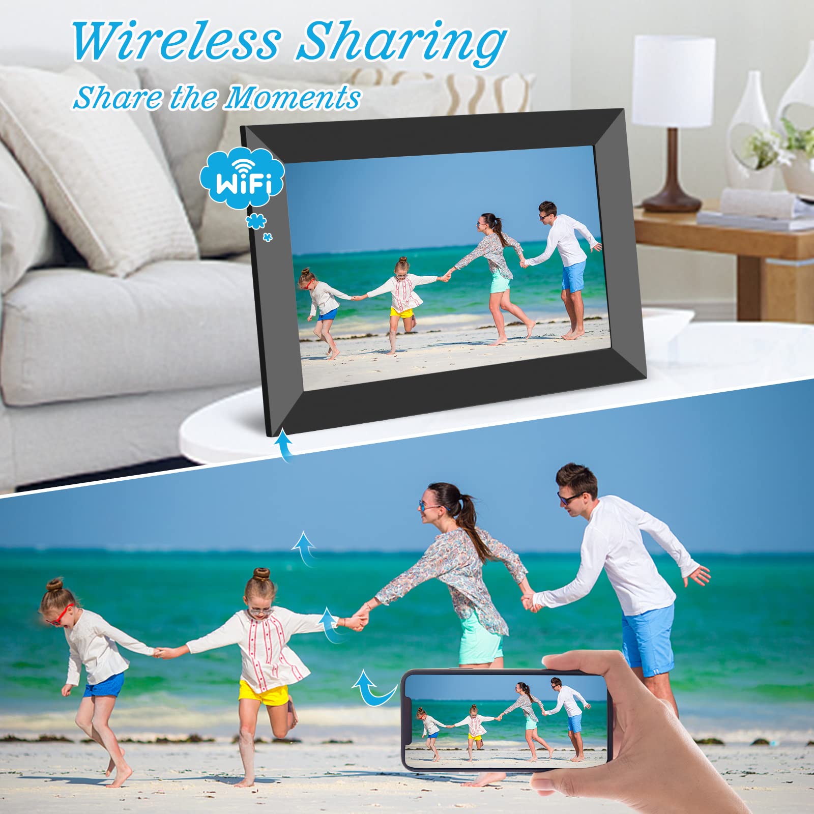 - Original Digital Picture Frames – WiFi Digital Picture Frame 10.1 Inch Smart Digital Photo Frame with IPS Touch Screen HD Display, 16GB Storage Easy Setup to Share Photos or Videos Anywhere via Free Frameo APP (Black Frame) by Weipan