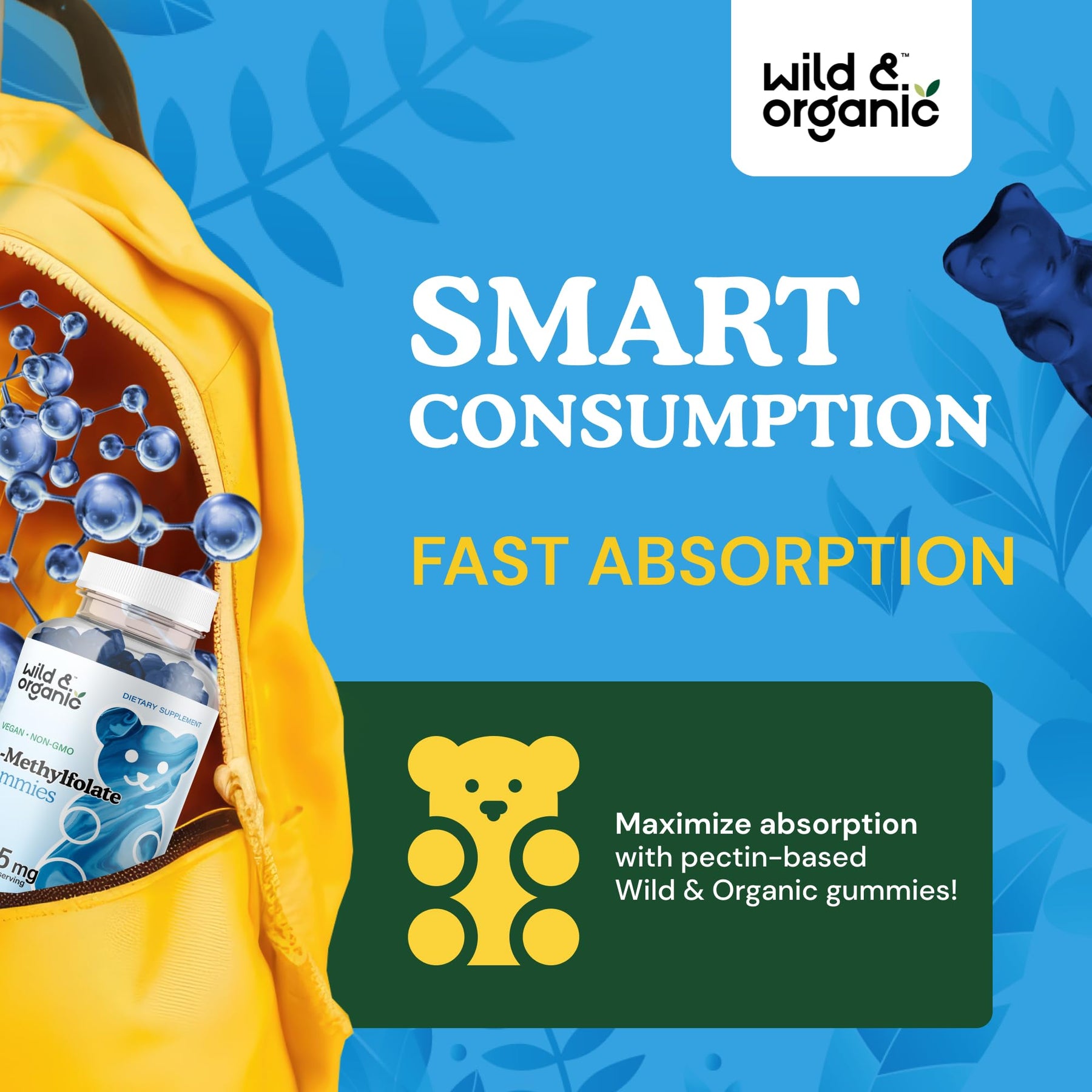 - Original B9 (Folic Acid) – Wild & Organic L-Methylfolate 15mg Gummies - Mood & Brain Support - Folate 5-MTHF Supplement for Brain, Focus, Clarity - Folate Supplement w/Vitamin B9-60 Non-GMO L Methylfolate Gummies by Wild & Organic