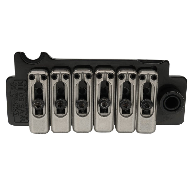 - Genuine Wilkinson parts, made in Korea. SUS stainless steel saddles with locked-down feature; 40mm depth full steel block, steel base plate, heavy and thick; Inner thread tremolo arm with set screw to tighten, more stable and not easy to get loose