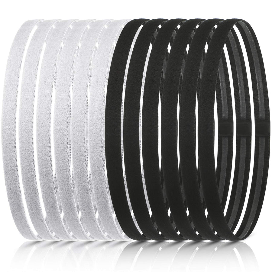 - Original Sport Headbands – 12 Pieces Thin Non-Slip Elastic Sport Headbands, Hair Bands with Non Slip Silicone Grip Exercise Hair Sweatbands for Men Women Football Basketball Soccer Tennis Yoga (Black, White) by WILLBOND
