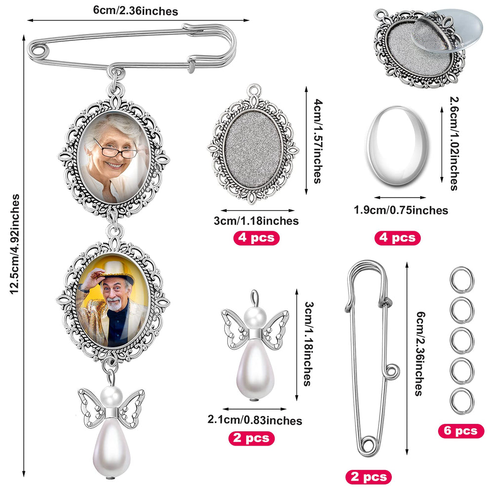 - What you get: this package comes with 2 sets of wedding bouquet photo charm DIY kit, each set includes 2 pieces of double lacy blank pendant bezel bases, 2 pieces of oval glass cabochons with 25 x 18 mm photo areas, 1 piece of pins, 1 piece of pendant and assorted pieces of jump rings, nice combination set for you to use