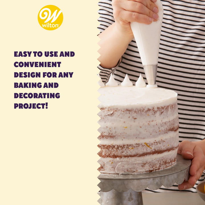 - Durable & Secure: Our frosting piping bags are made from high-quality plastic that is resistant to bursting, ensuring a mess-free experience. Add your Wilton favorite piping tip and begin to decorate.