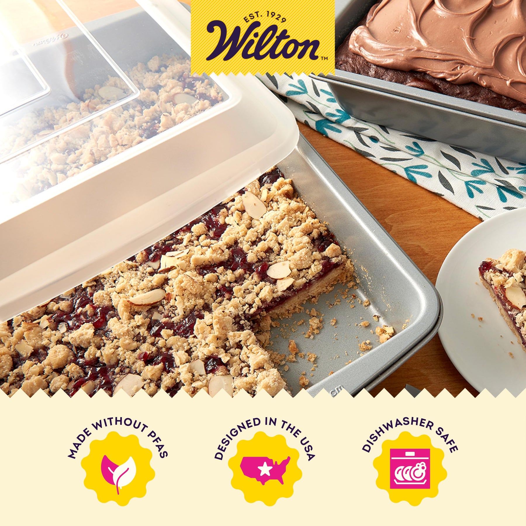- READY, SET, BAKE: This Wilton baking pan can be used to bake brownies, bar cookies, casseroles and more. Add the plastic cover, then bring them to a picnic, party or family gathering!