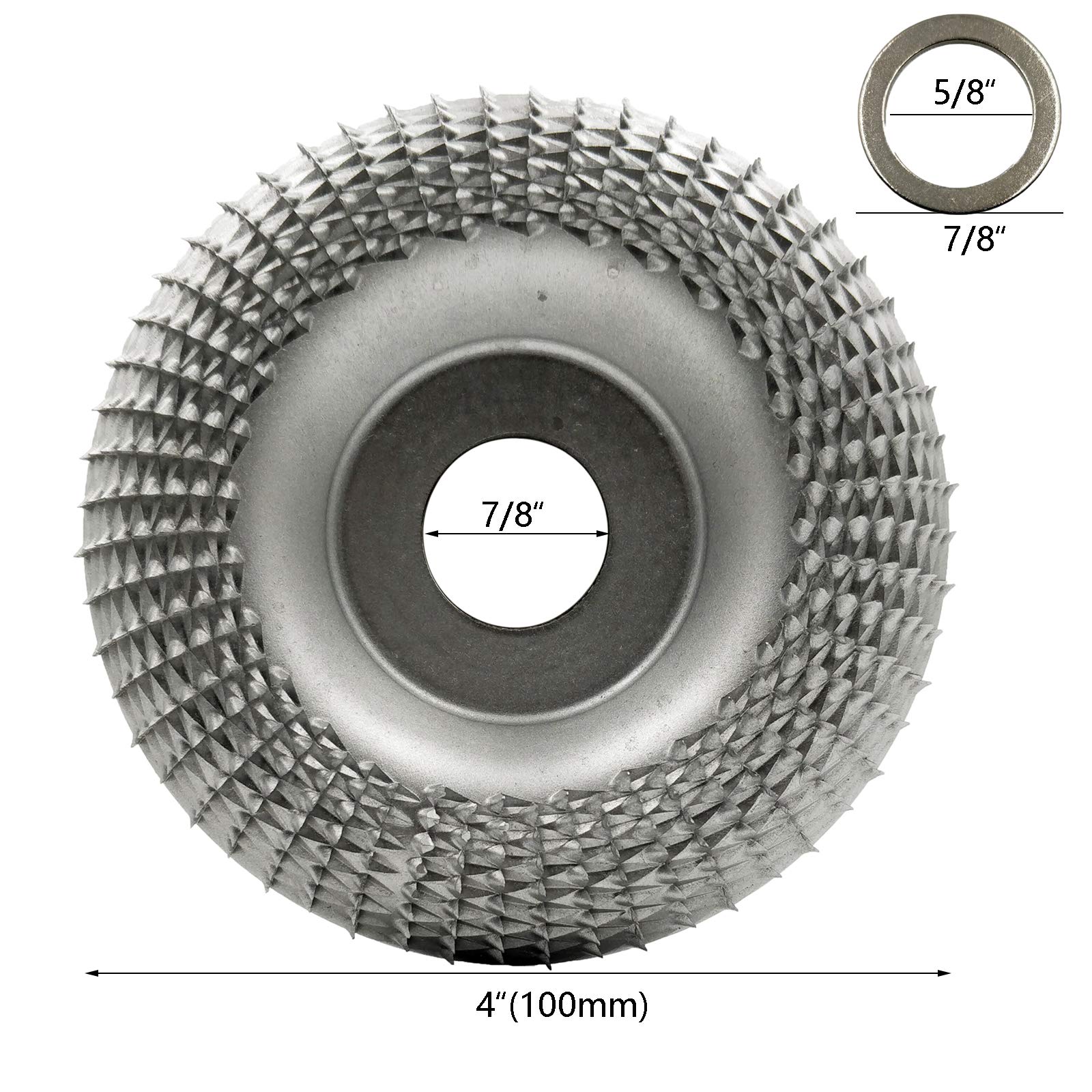 - Fit for: The wood carving disc with 7/8 to 5/8 adapter bushing. The inner diameter can be changed from 7/8 to 5/8, and the outer diameter is 100mm (3.93 Inch), It fits most standard 4 or 4 1/2 angle grinders with 5/8 spindle