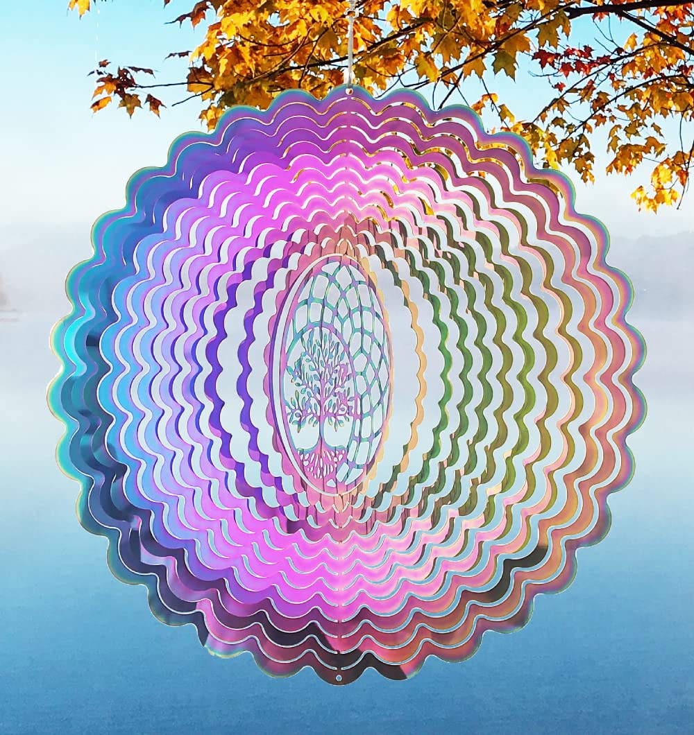 - Unique Mirror Reflecting Magical Wind Spinner:Metal Wind Spinners Outdoor Hanging Wind Spinners for Yard and Garden Decoration, Tree of life wind spinner mandala Design with mirror coatings,no paint falls off problem,outdoor hanging decorations color changing 3D wind spinner,the garden suncatchers design reflecting light and motion effects.