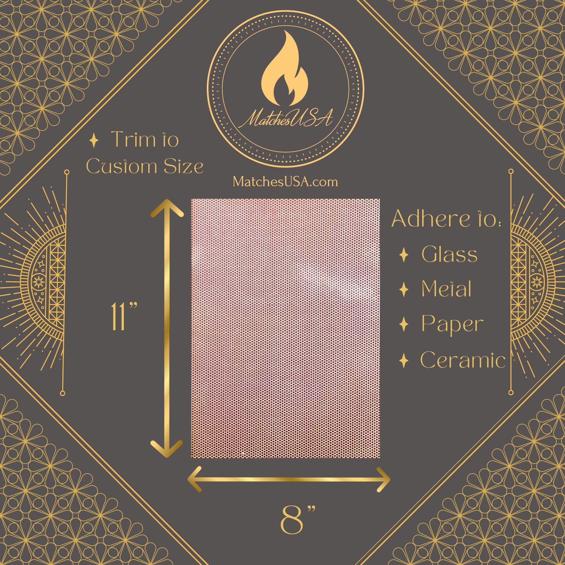 - SIZE - 8.5x11 inch adhesive striker paper sheet. May be trimmed with scissors for custom sizes, shapes, strips, and patterns to fit any craft project. | Replacement Stryker Stricker for Safety Matches | Peel & Stick Flint Lighter Dot Pad Custom Shape & Size .