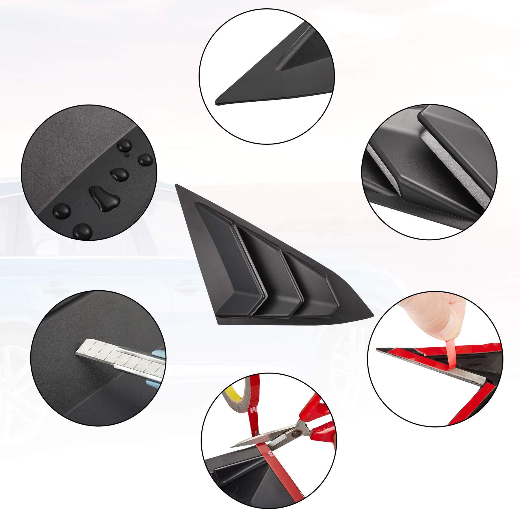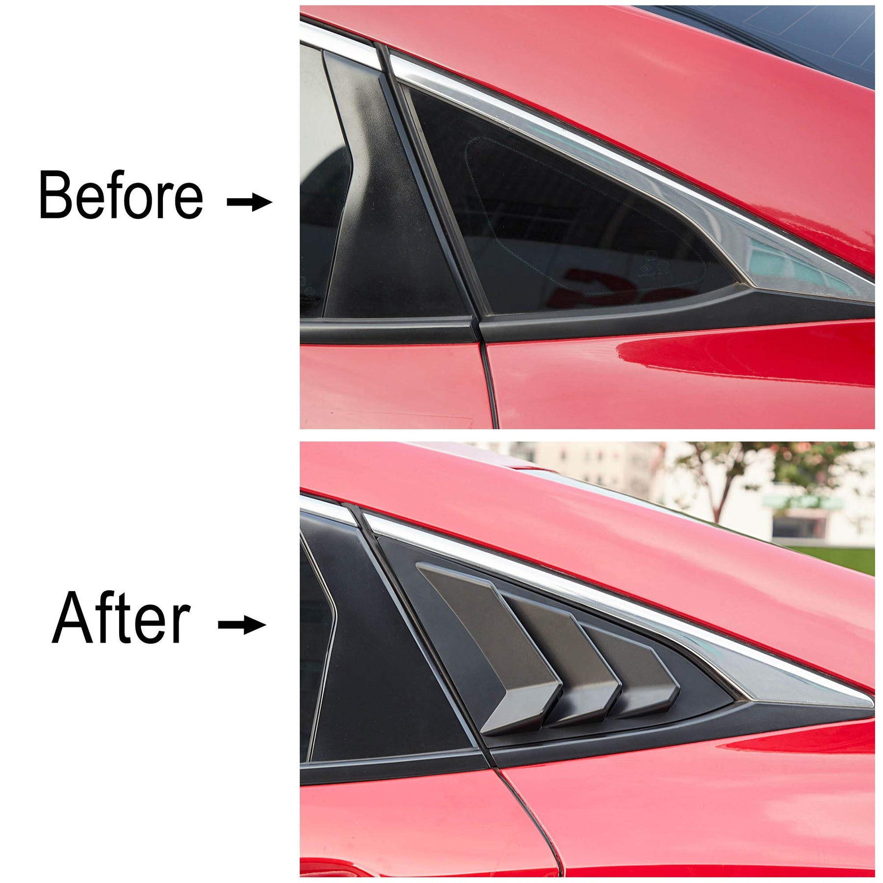 - Fashionable DesignRear side window louvers, makes your car cooler and trendier. The surface is smooth and delicate, and the interior looks unique.