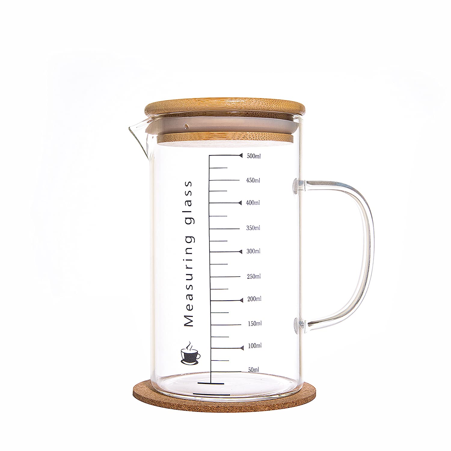 - Original Beakers – with Handle Bamboo Lid Beaker - lab Pouring Spout Beaker Borosilicate Glass Food Grade Measuring Cup 500ML by NS Online