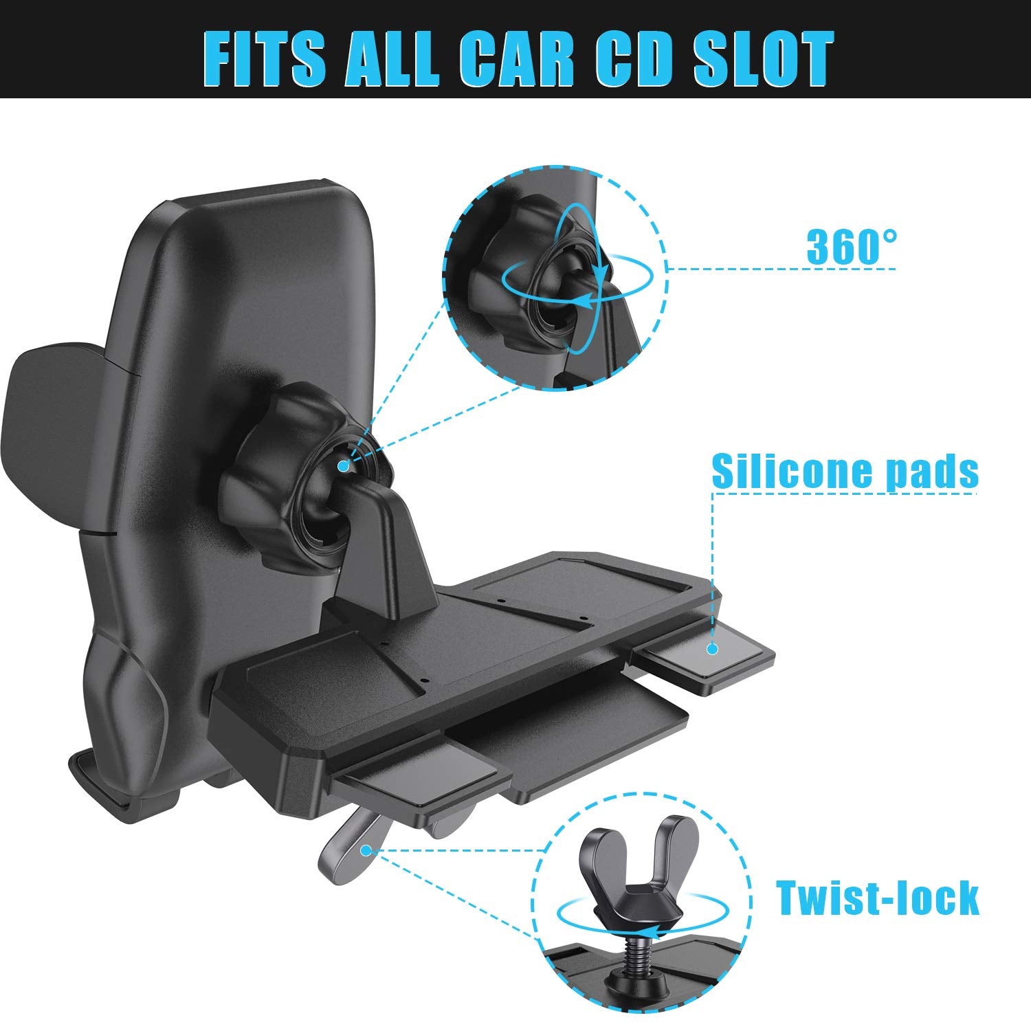 - EASY UNIVERSAL FIT: The WixGear CD phone mount has an ultra-convenient design that is perfectly compatible with any car and smartphone. The strongcell phone holder can be attached on the CD player of any car, and it’s perfect for all iPhones, Samsung, Motorola, HTC, Droid, and Nokia mobile phones.