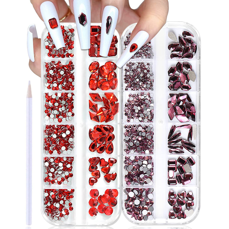 - Original Rhinestones & Decorations – 2 Box Flat Back Red And Claret Red Rhienstones For Nails Crafts With Picker Pencil Set Red Nail Rhinestones Nail Gems And Rhinestones Glass Flatback Rhinestones Red Gems Diamonds For Nails by WOKOTO