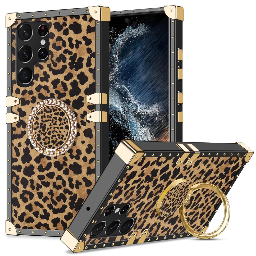- Original Basic Cases – for Galaxy S22 Ultra Square Case with Kickstand Ring Stand Holder Luxury Retro Case for Women Girls Metal Edges Shockproof Protective Cover for Samsung Galaxy S22 Ultra 6.8'' Leopard by WOLLONY