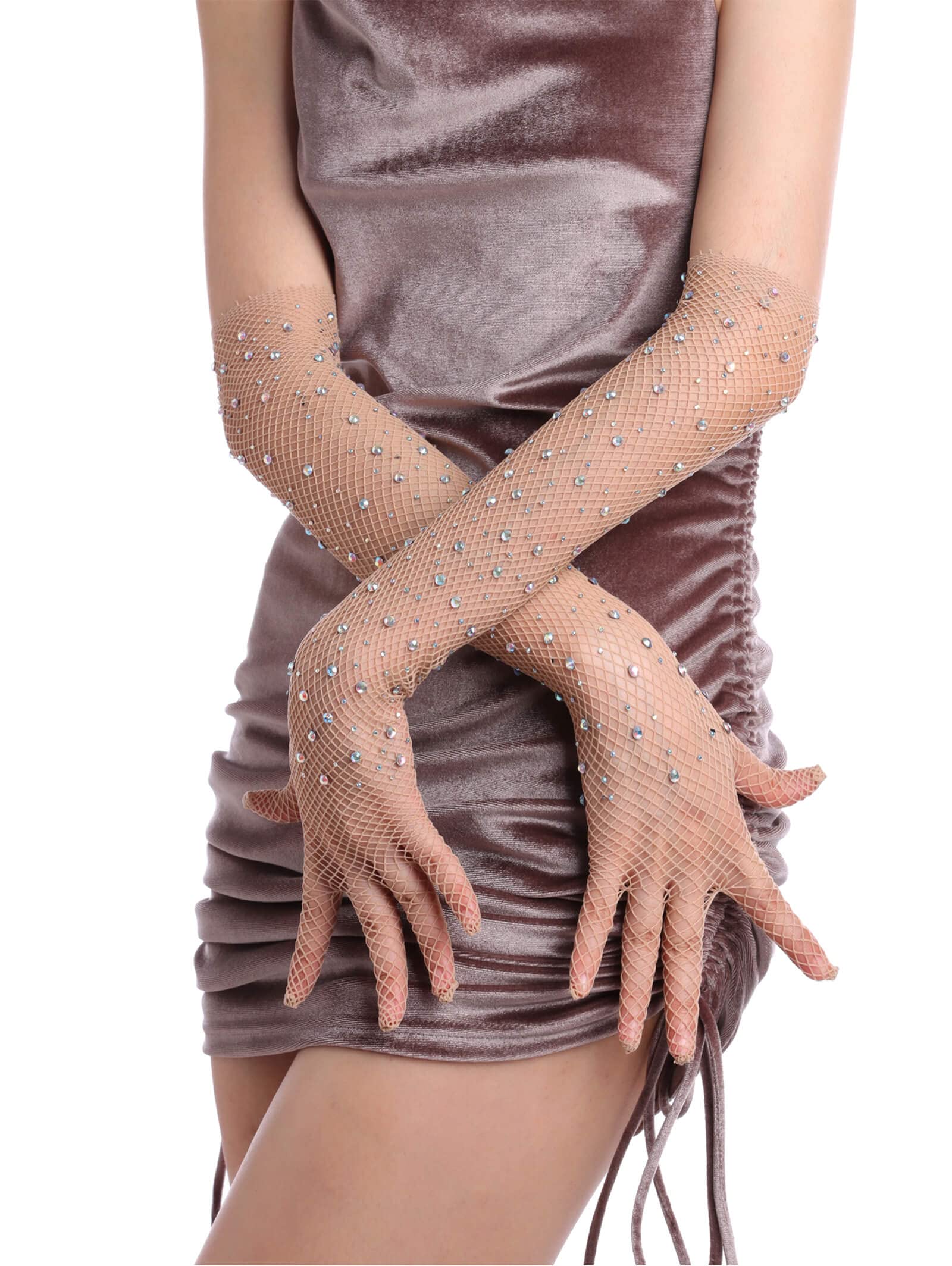- Original Gloves – Women Rhinestone Fishnet Long Gloves Mesh Sparkly Glitter Fashion Opera Gloves For Party Halloween Costumes Accessories Nude by OTPEH