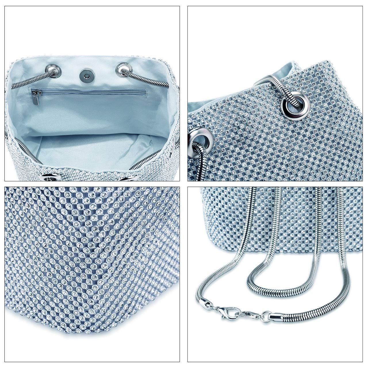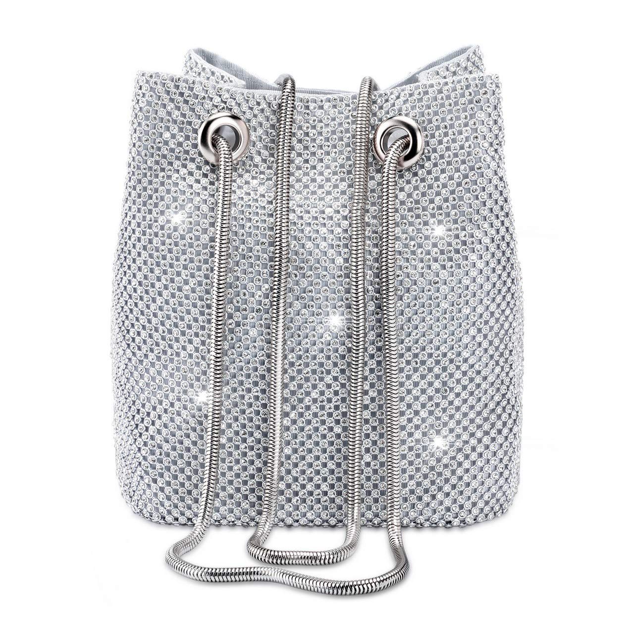 - Original Evening Bags – Women Rhinestones Crystal Clutch Mini Evening Bags Bucket Bag Party Prom Wedding Small Shoulder Cross-body Purses (Mini, Silver) by CHIC DIARY