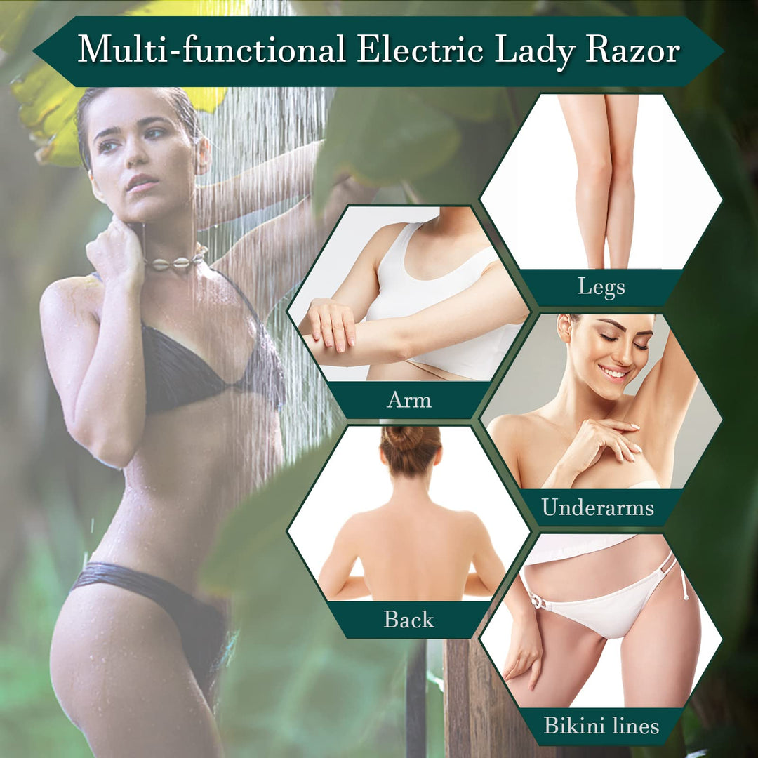- IPX7 WateproofDesigbed with 100% IPX7 waterproof for whole body washable, this electric razor for women is great for both wet and dry use. The detachable shaving heads and long enough cleaning brush make this lady's body razor easy to clean.