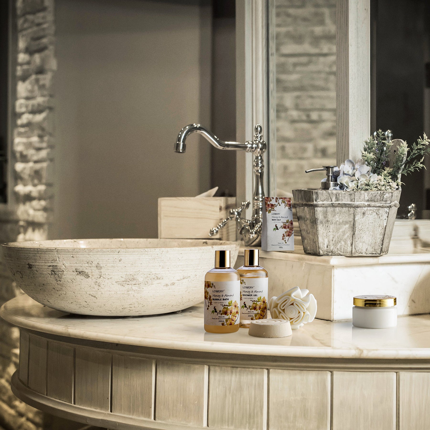 - Original Sets & Kits – Womens Gifts for Christmas Gift Baskets for Women Who Have Everything, Home Spa Honey & Almond Scent - Luxury Bath & Body Set With Shower Gel, Bubble Bath, Body Lotion, Bath Salt, Bath Bomb, Bath Puff by LOVERY