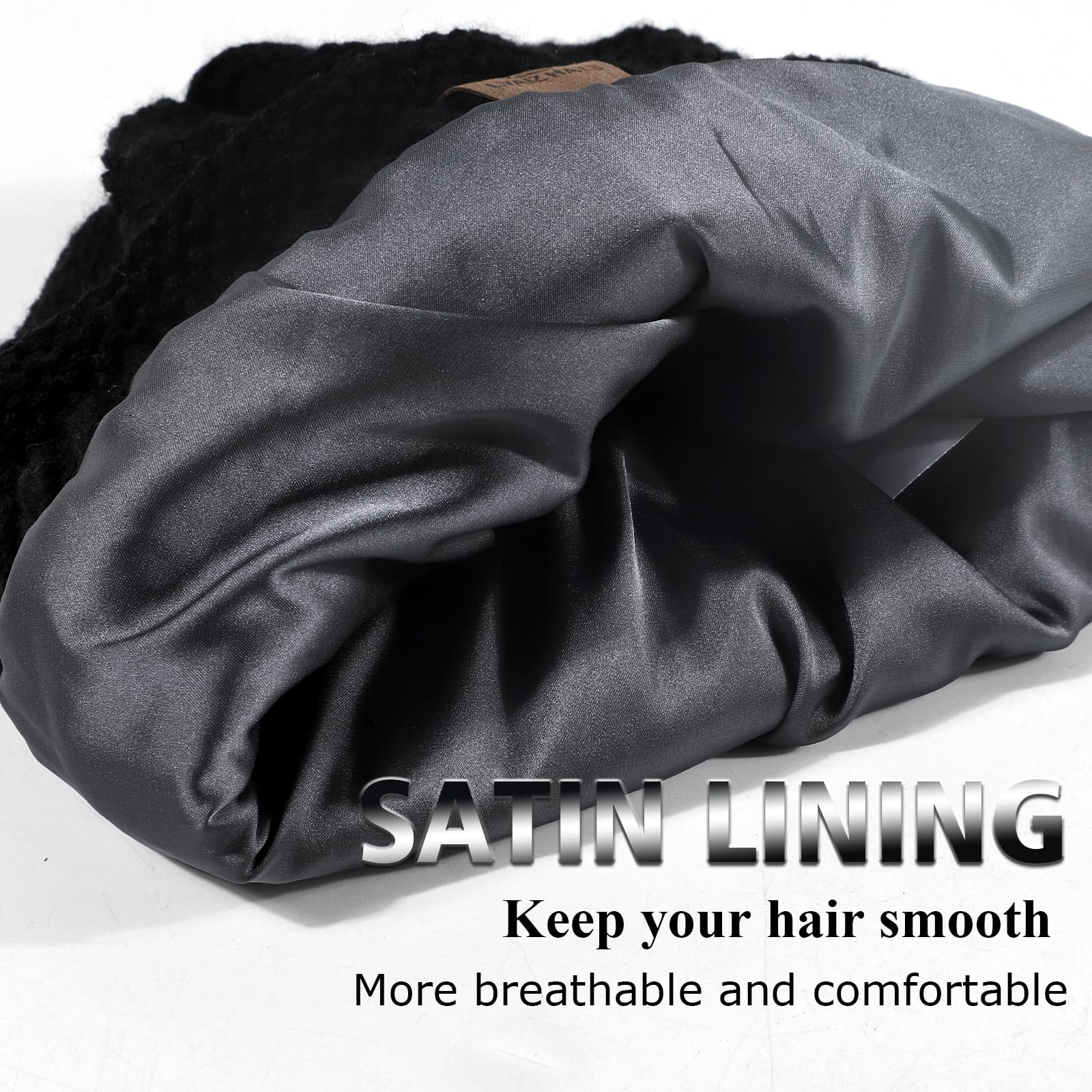 - SOFT SATIN LINING: The dry winter makes your hair moisture to be volatilized more severely so split ends come more often. Working as a satin bonnet, Lvaiz satin lining design makes this beanie very smooth to wear and fits your head perfectly. Besides, it allows your hair to be well looked after and protected. Keep your hair smooth and maintain the hair moisture from being exposed to the dry air meanwhile the thick outer preserves the warmth providing extra care to your head and ears.
