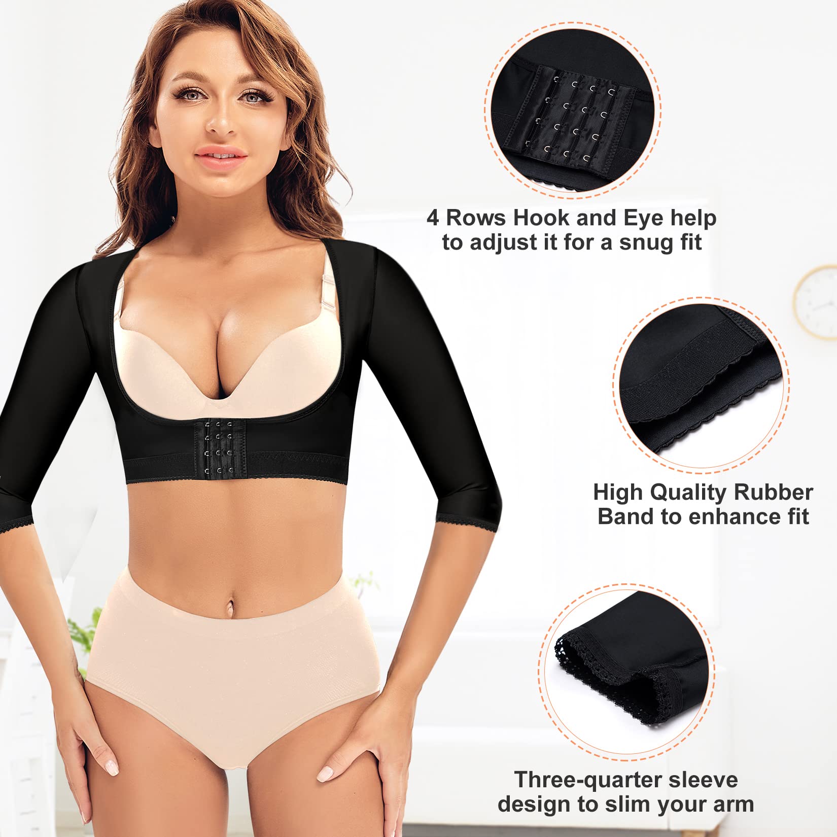 - Original Tops – Women Upper Arm Shaper Compression Sleeves Post Surgical Slimmer Humpback Posture Corrector Tops Shapewear (Black, Large) by Wonderience