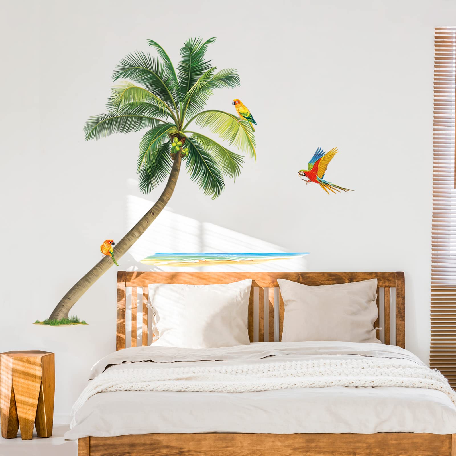 - Original Wall Stickers – Palm Tree Wall Stickers Tropical Plants Birds Peel and Stick Wall Art Decals for Living Room Bedroom TV Wall (H:46 Inches) by wondever