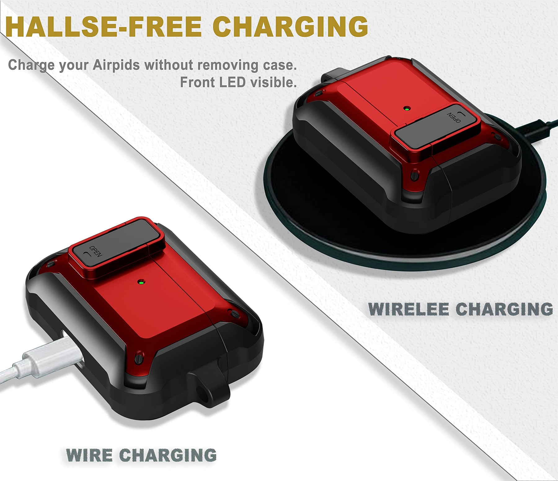 - Wonjury Airpods Pro Case Cover for Men Lock with Cleaner kit, Military Armor Series Full-Body AirPod Pro Case with Keychain Cool Air Pod Pro Shockproof Protective Case for AirPods Pro 2019, Black/Red