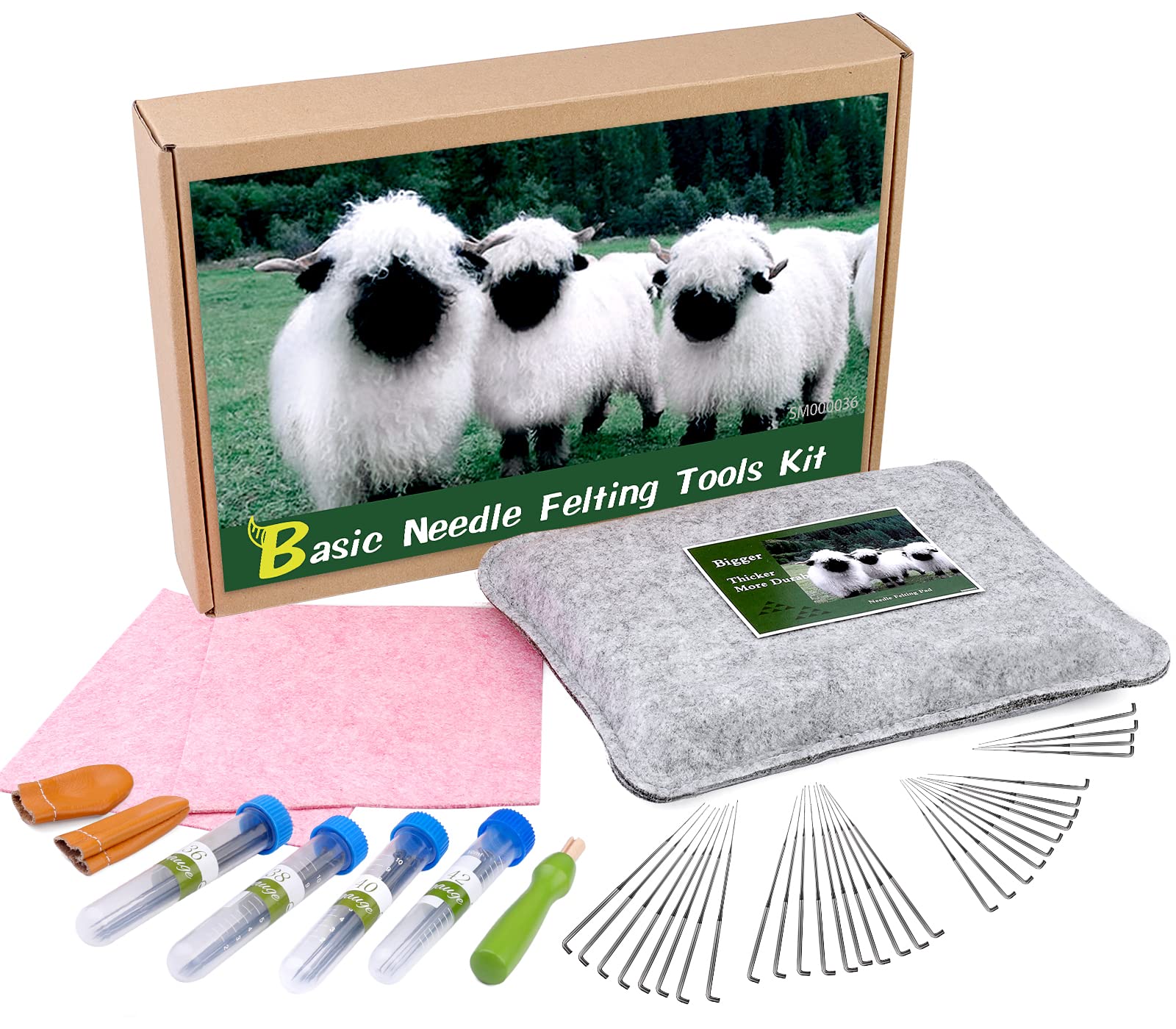 - Felting Pad Basic Tools Kit: 1 large size felting pad (25 x 20 x 3.5cm), 10 pcs 40 gauge needles, 10 pcs 38 gauge needles, 8 pcs 36 gauge needles, 1 wooden felting needle holder, 2 pcs cleaning cloth (15x15cm), a pair of finger cots and 3 pcs needle storing bottles, which can meet your needs for making different small animals, dolls, toys and other craft work
