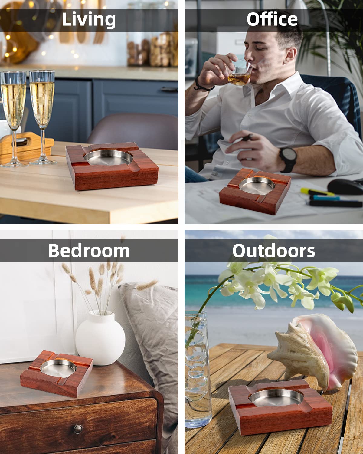- PREMIUM MATERIAL: This wood cigar ashtray bowl is made from top quality wood. The ashtrays cigar with fire-retardant paint is easy to clean , this durable wood ensures that the ashtrays for cigarettes indoor can be comfortably used outdoors, the ash tray is able to withstand wind, rain and does not fade under sunshine