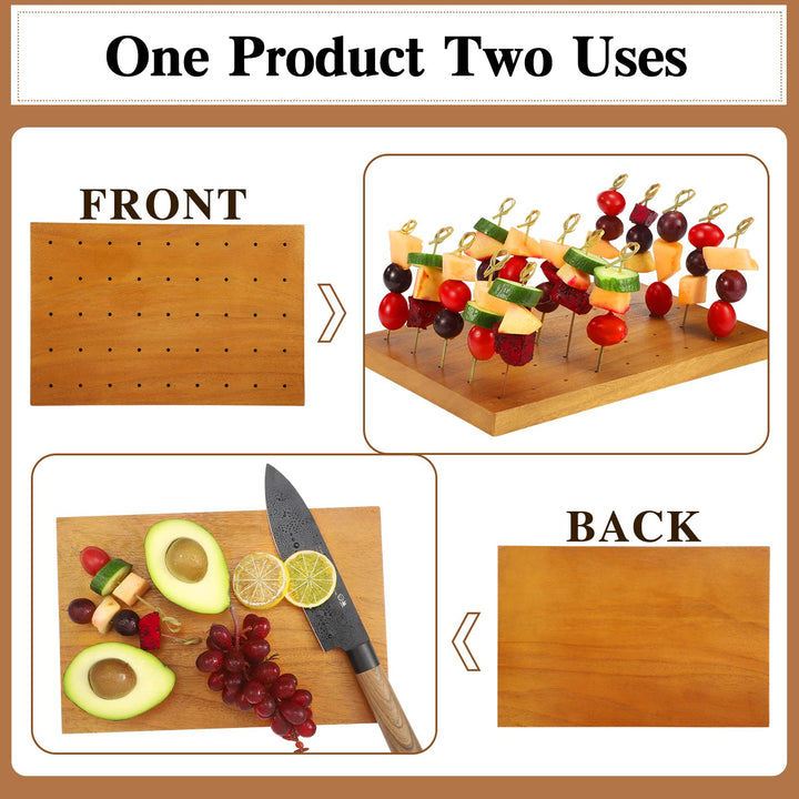 - Multiple uses: our wooden skewer stands are flexible in using, you can use them as food holders for skewers or as a cutting board, what you need to do is just to turn it over, beautiful appearance with dual use skills, convenient and easy for you to use