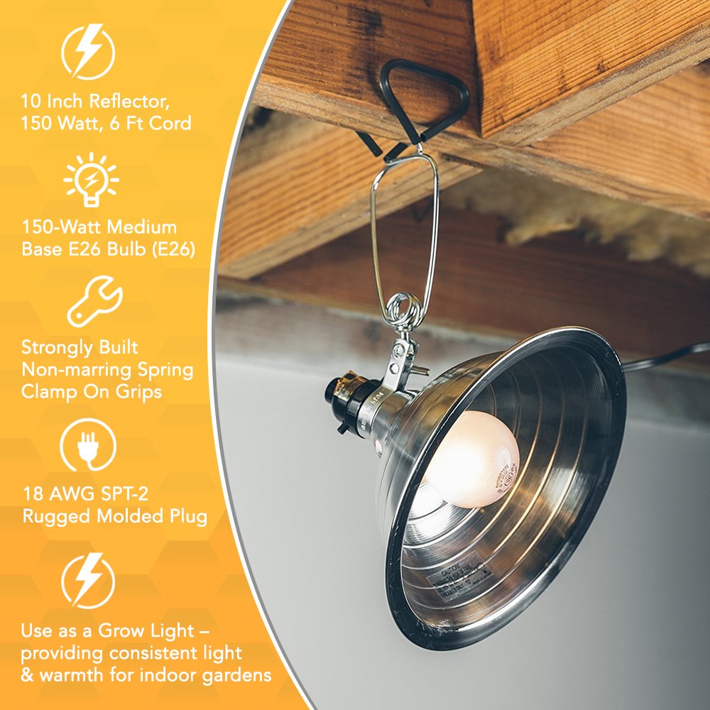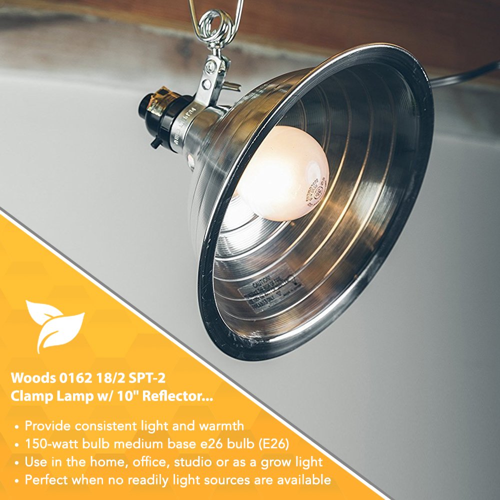 - Original Clip Lights – 0162 18/2-Gauge SPT-2 Clamp Lamp with Reflector, 10-Inch, 150-Watt, 6-Foot by Woods