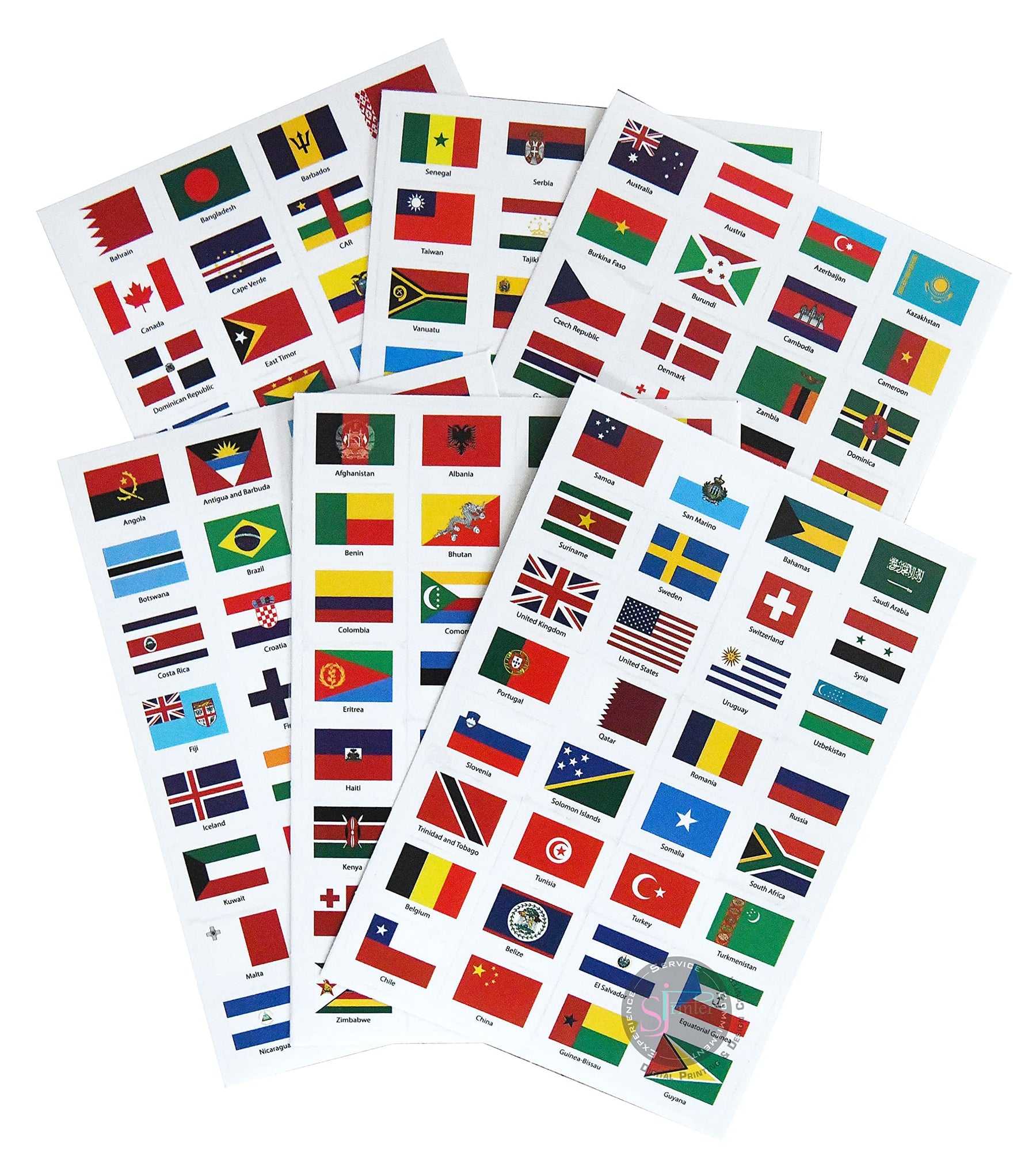 - 192 Countries Flags Stickers (One Flag For Each Country) - Each Flag Is 1 X 0.6 And Each Sticker Sheet Is 4x 6. Country Stickers Are High Quality Transparent Pvc.