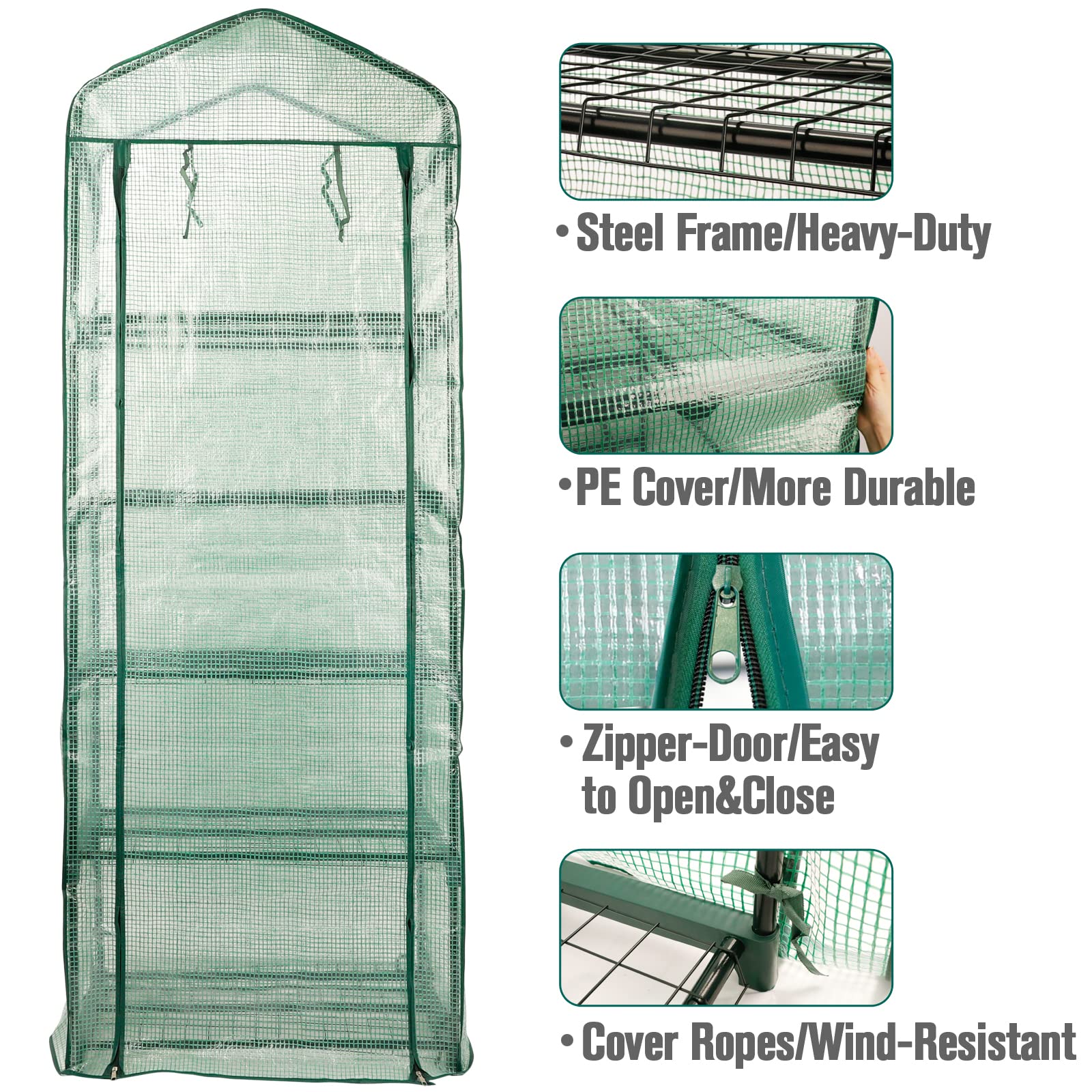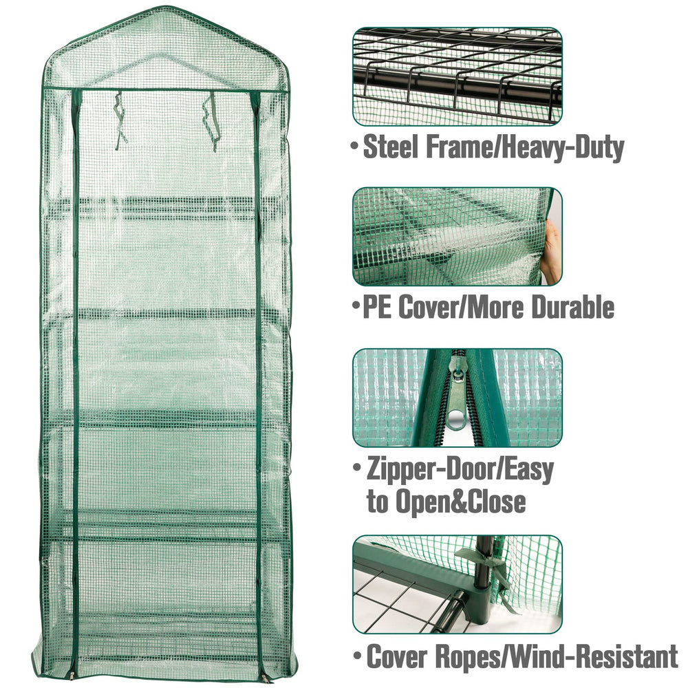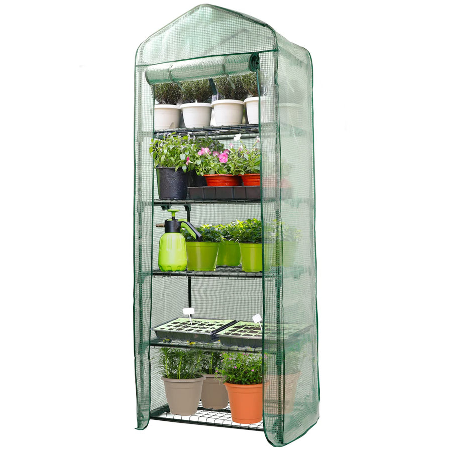 - Original Greenhouses – Garden 4 Tier Mini Greenhouse - 63'' H x 27'' L x 19'' W - Sturdy Portable Gardening Shelves with Durable PE Cover w/ Roll-Up Zipper Door- Small Green House Indoor & Outdoor for Plants Flowers by Worth