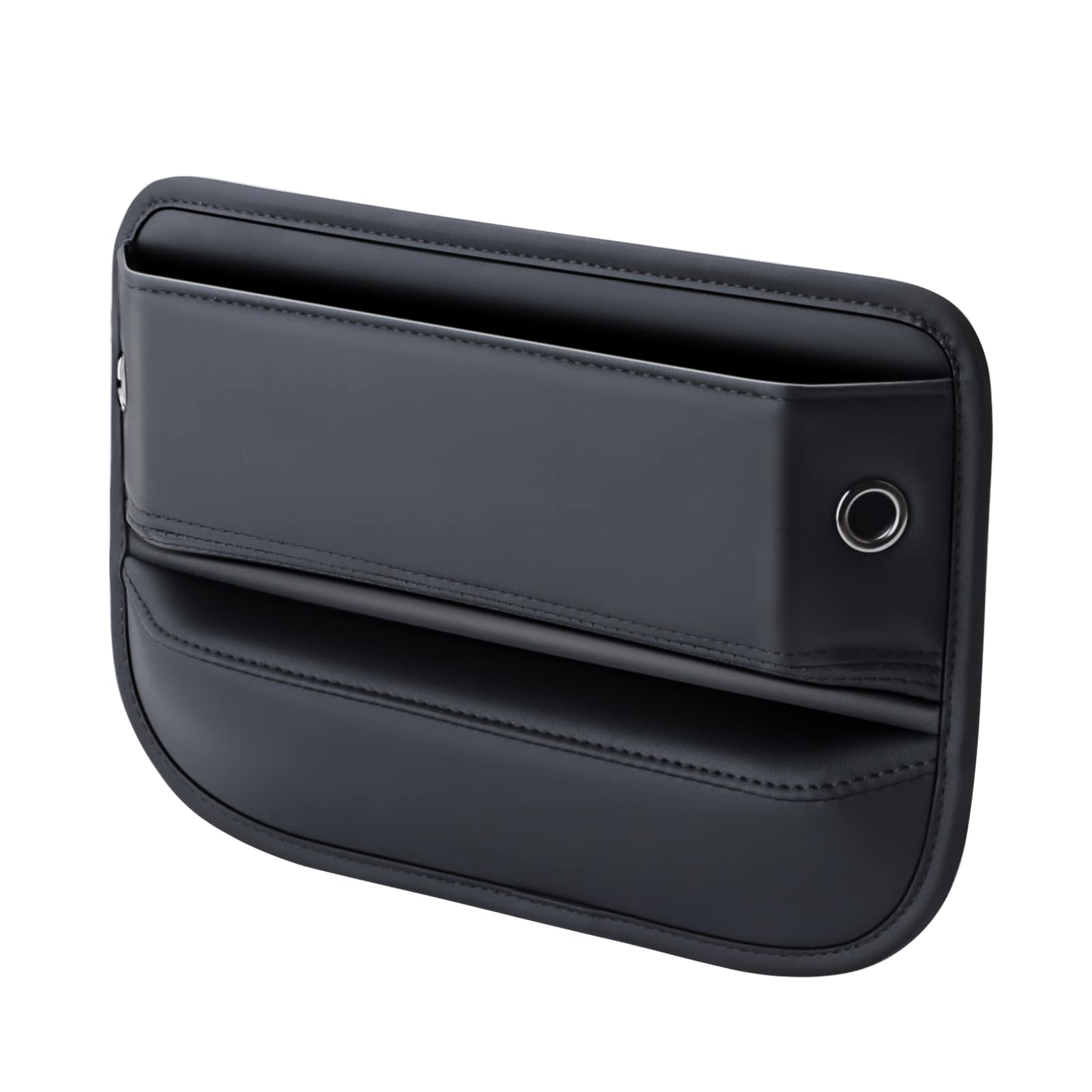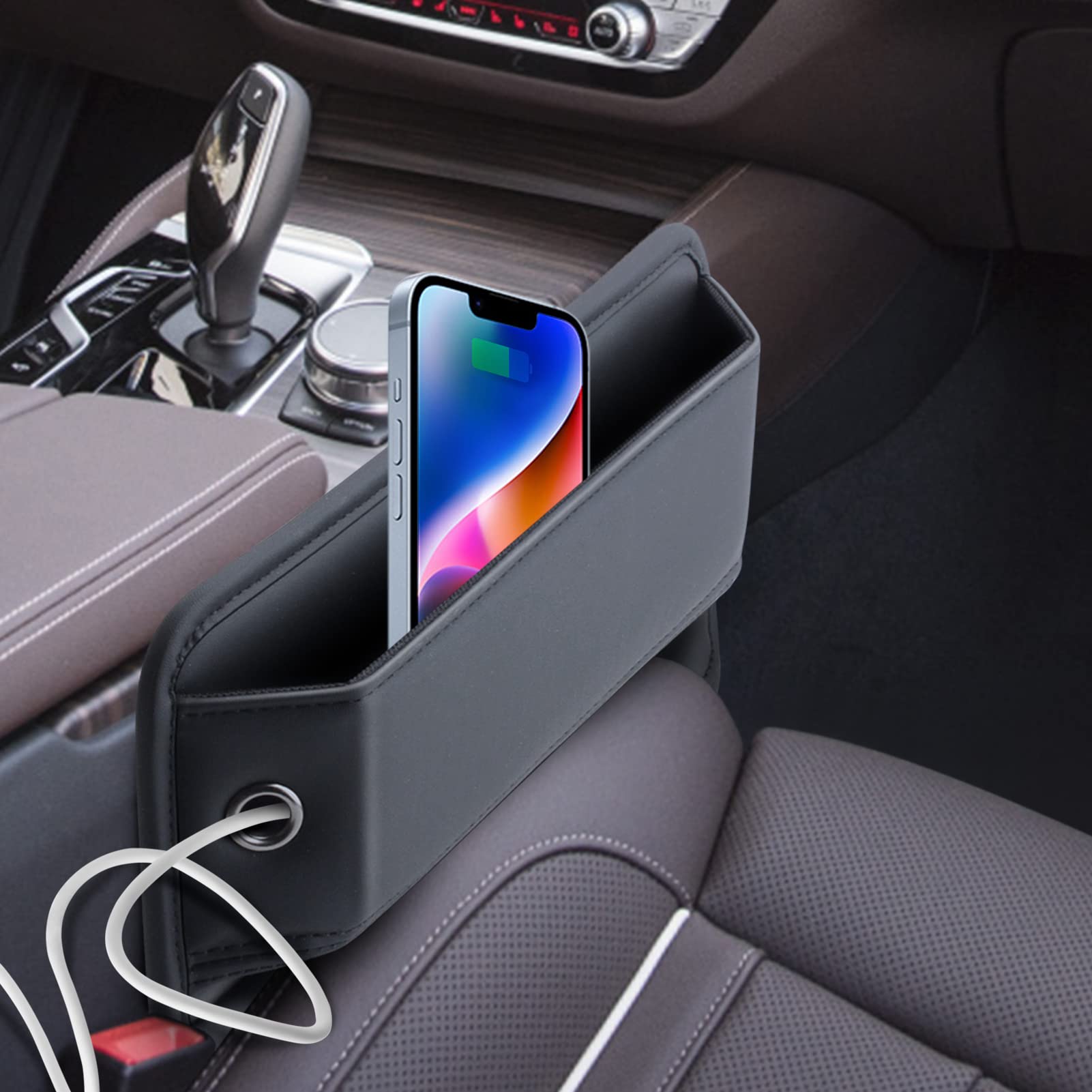 - ?Fashion Vegan Leather Design?Crafted from vegan leather and oxford cloth, this front seat gap organizer is fashion and long-lasting. The car seat storage box will help you create a neat and clean car inner environment. The car seat gap organizer matches all interior colors, it will look like it came with car if you have black leather interior.
