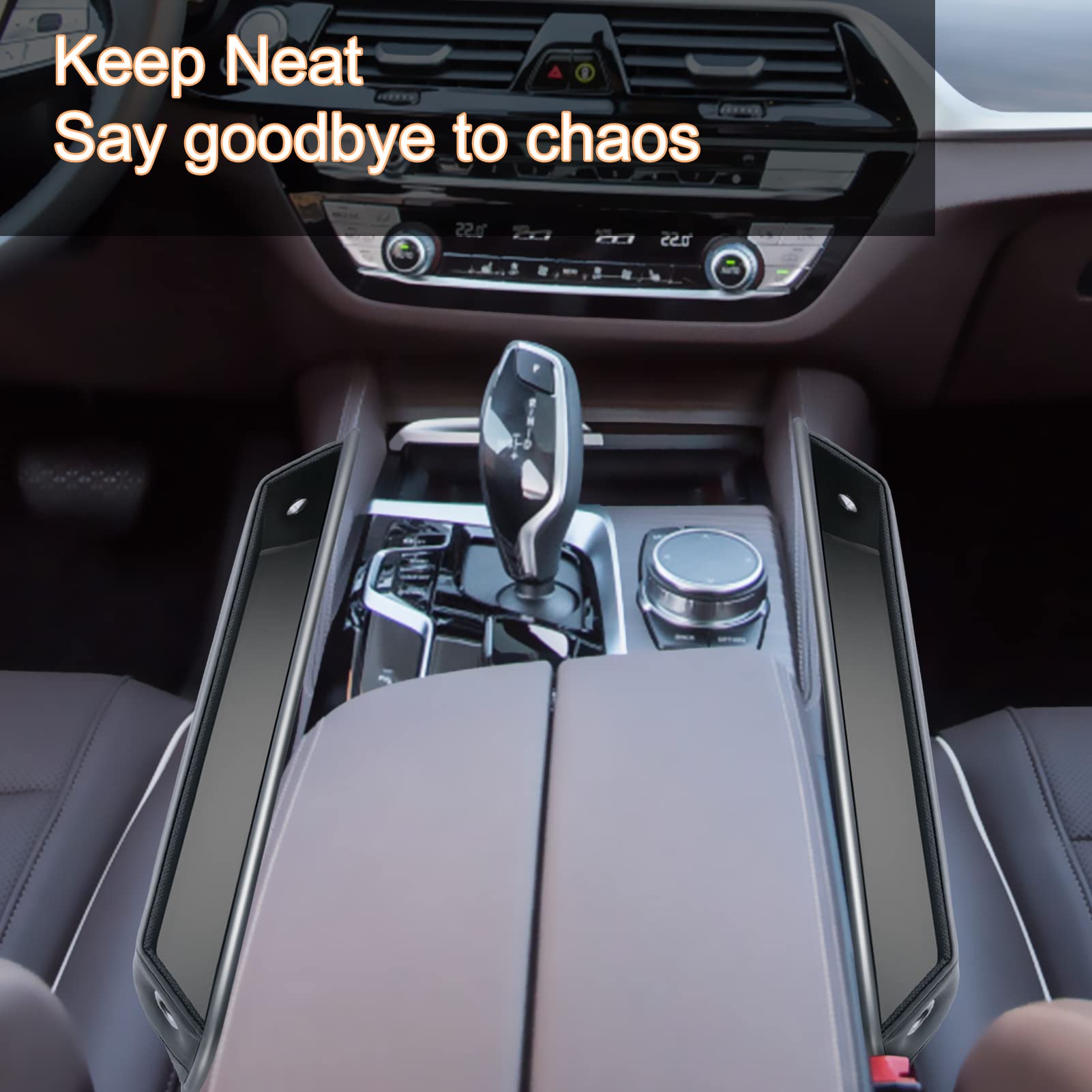- ?Premium Leather?This car organizer front seat is made of premium leather, which looks very luxurious and feels soft. The auto console side storage box also has good texture and smooth feel. Instead of plastic, soft leather won't break your seat leather.