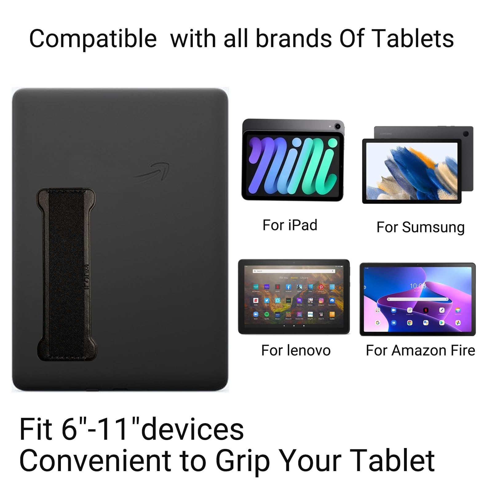 - Original Stands – Finger Grip for Tablets -Universal Tablet Hand Strap Holder- iPad Hand Holder Strap Grip for eReaders Fire Tablet - Kindle/Kobo/Voyaga/Lenovo/Sony Kindle E-Book Tablet(Black) by WUOJI