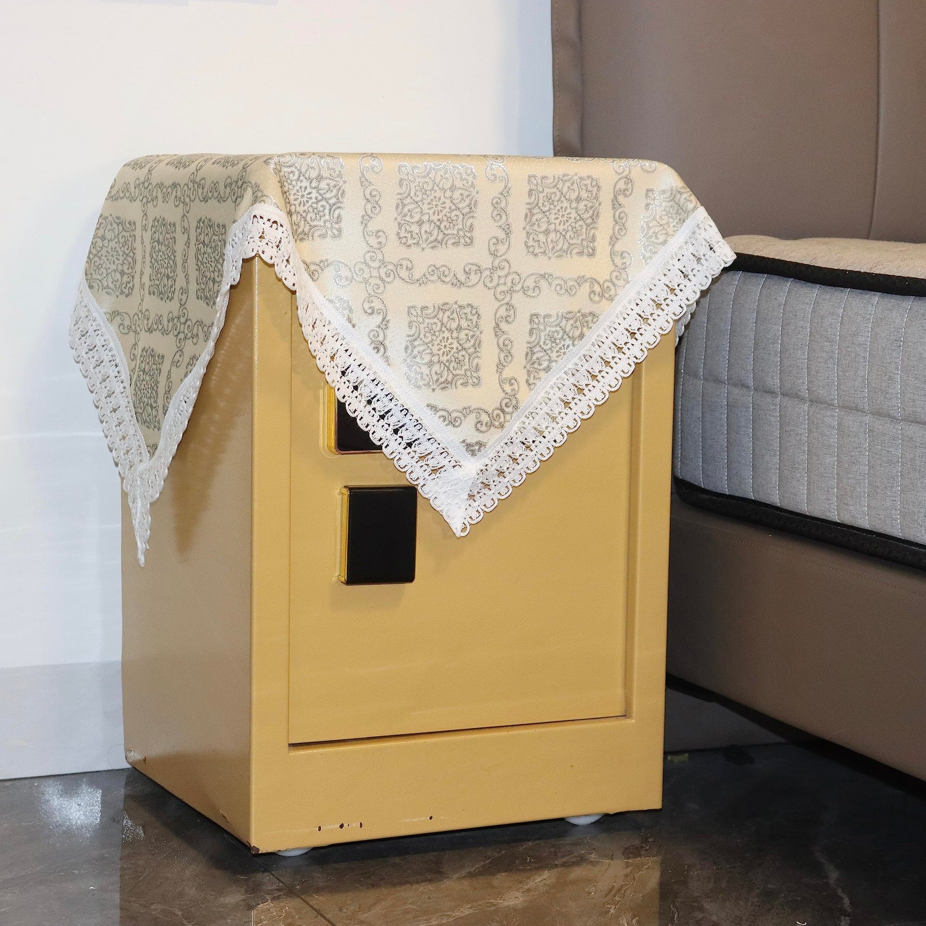 - Original Tablecloths – Nightstand Tablecloth,Farmhouse Tablecloth,Side Table Cover,Table Cloth for Bedside Table/Nightstand/Tea Table/Flower vase Table,Table Dustcover Doilies for Furniture (31 * 31 inch, Gold) by wutup