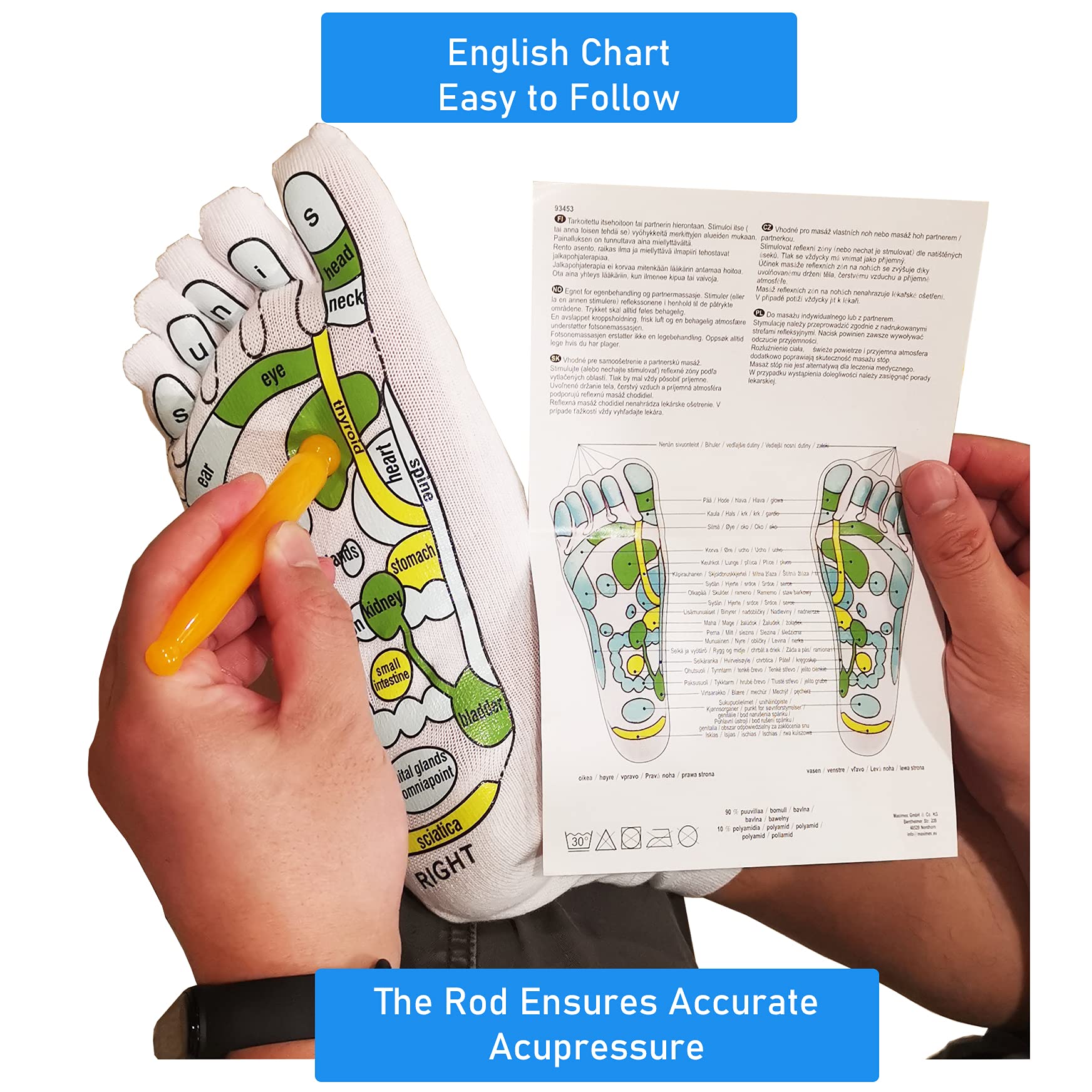 - Original Foot Massagers – Acupressure Reflexology Socks for Men and Women Foot Massage Socks Five Toe Separate Socks Cotton Reflexology Acupressure Charts in English Spanish Rod Included (White) by WZPUSMART