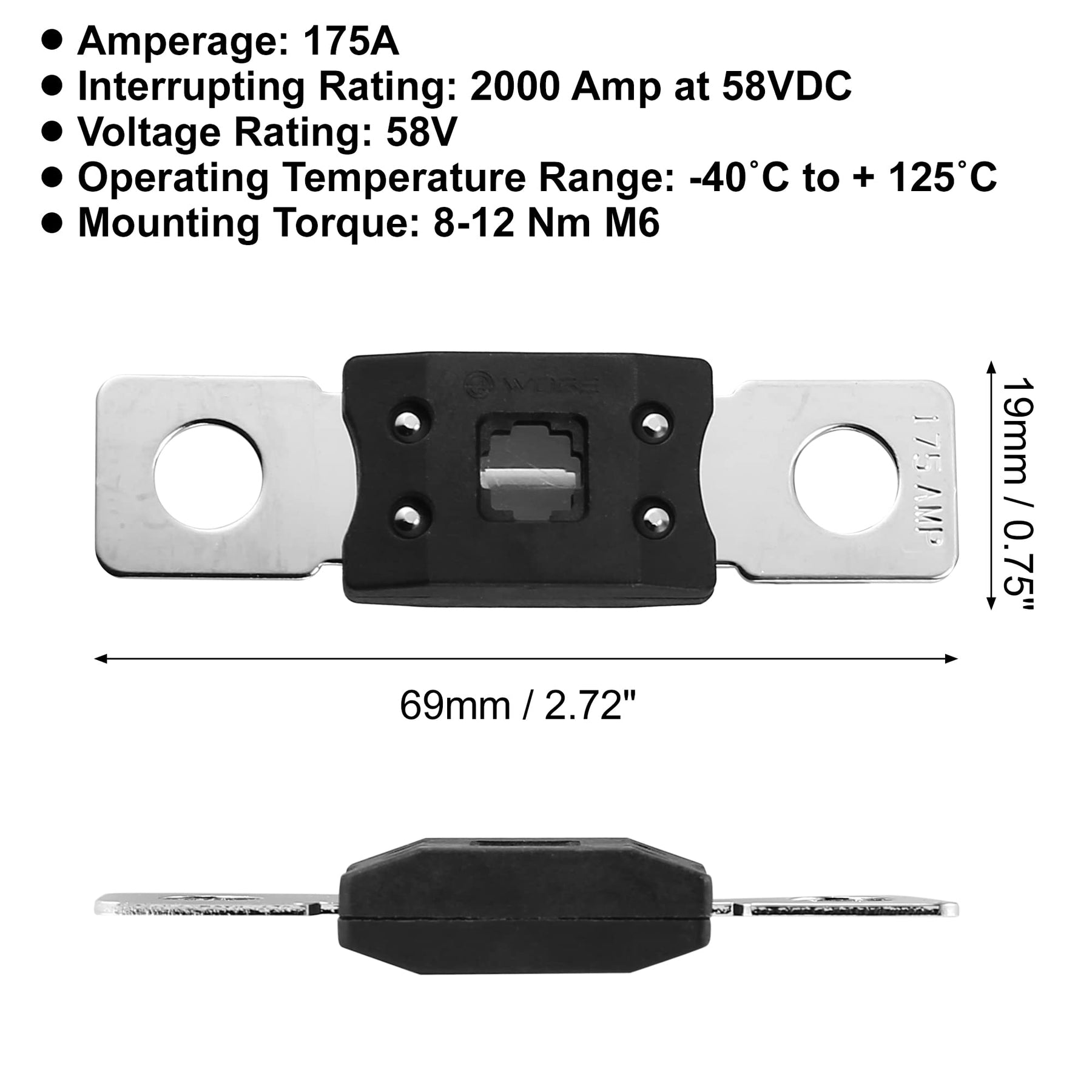- Package Includes: 1 x 175A Fuse, for universal within 58V. Mounting Torque: 8-12 Nm M6