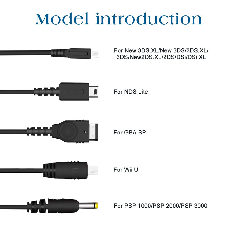 The USB charging cable compatible with Nintendo NDS Lite,New 3DS(XL/LL),3DS(XL/LL),2DS,DSi(XL/LL),NDS/GBA SP(gameboy advance sp),Wii U,PSP 1000 2000 3000.